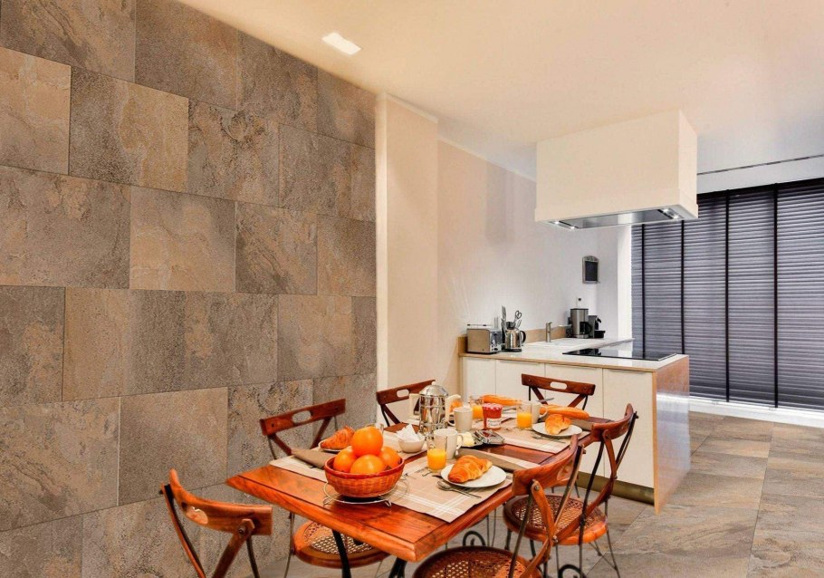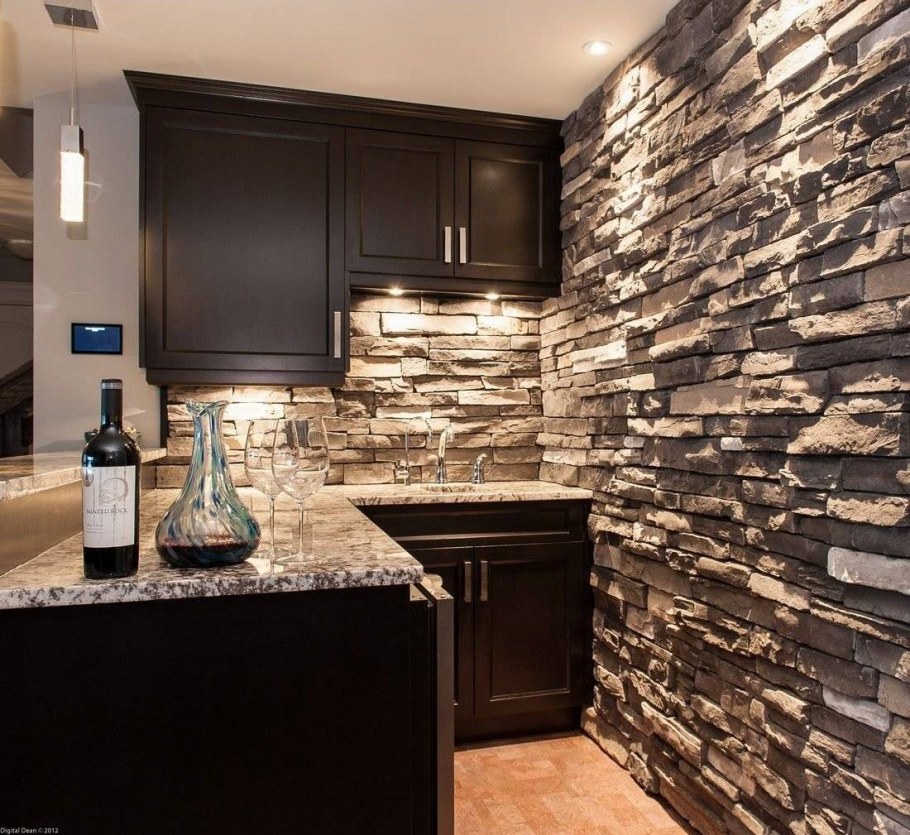 Отделка кухни под камень