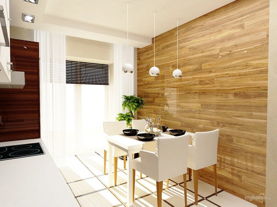 Ламинат на стене в интерьере кухни