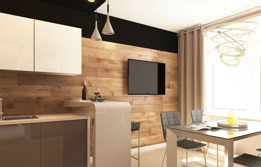 Деревянная стена на кухне
