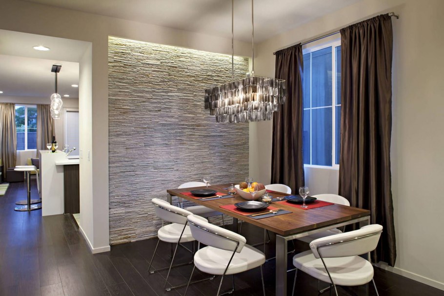 Декоративный камень на кухне в обеденной зоне