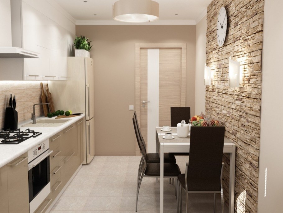 Интерьер прямоугольной кухни 7кв