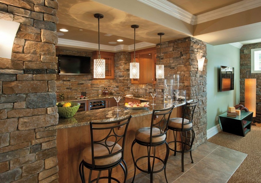Отделка кухни камнем