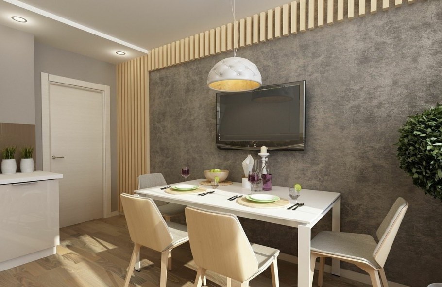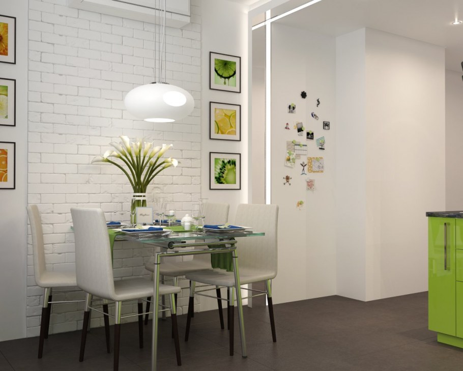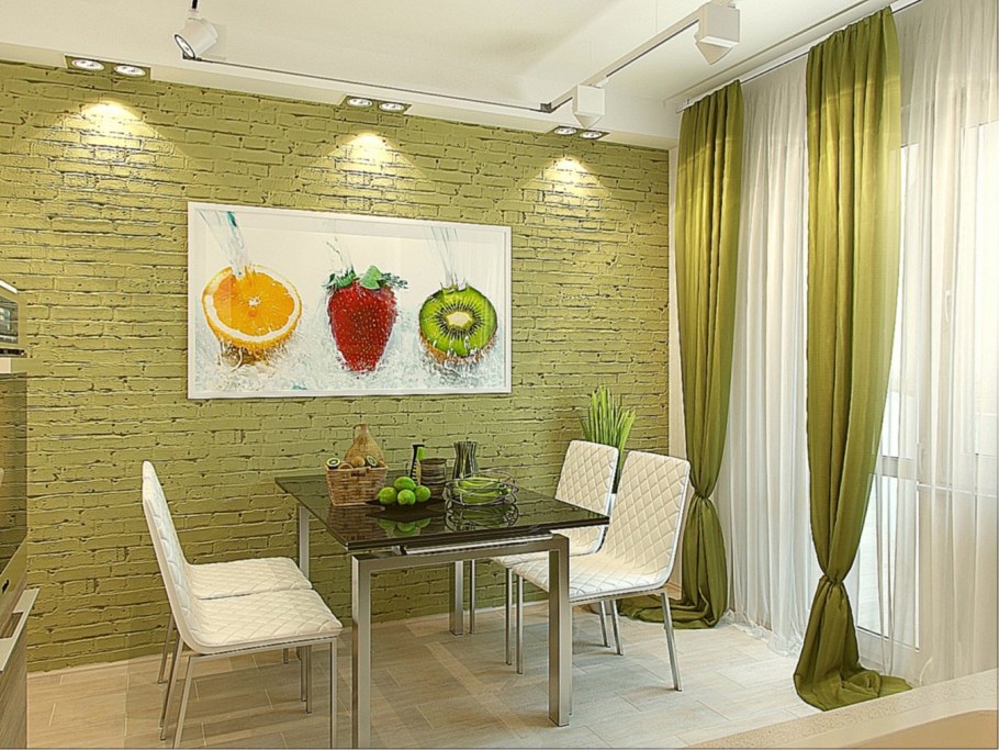 Стены на кухне в обеденной зоне