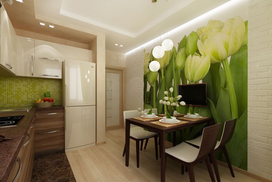 Модные обои для маленькой кухни