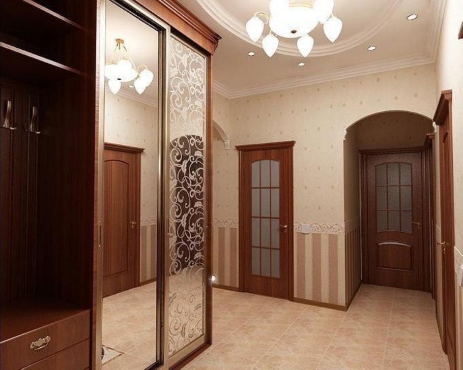 Коридор с коричневым шкафом купе