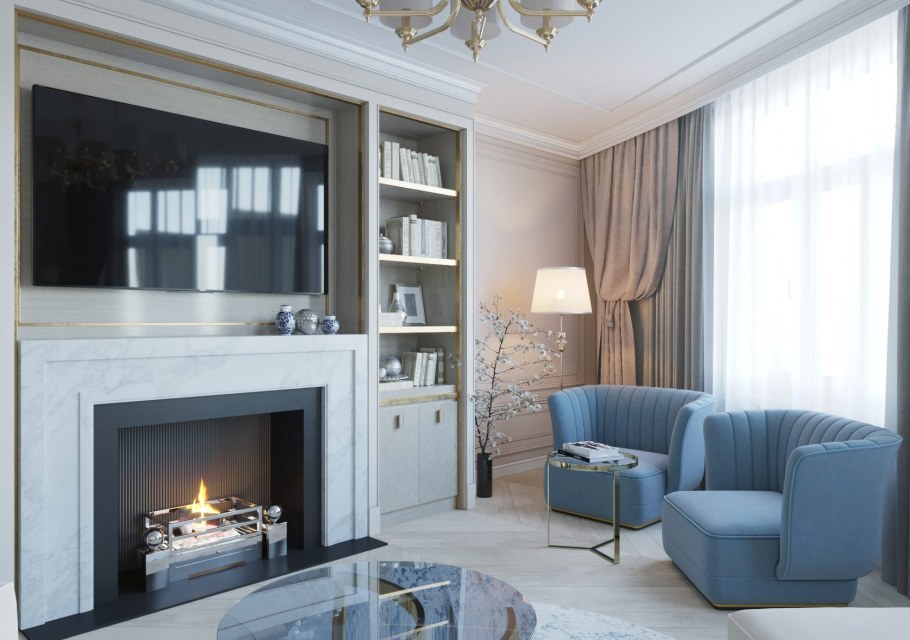 Гостиная с камином неоклассицизм стиль