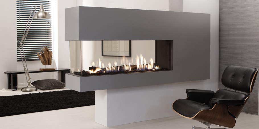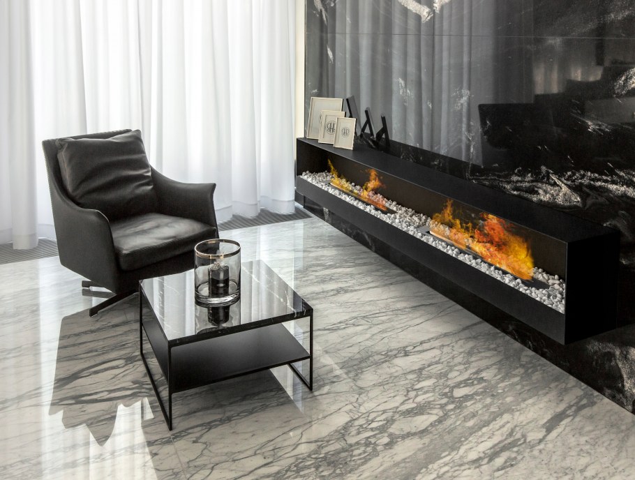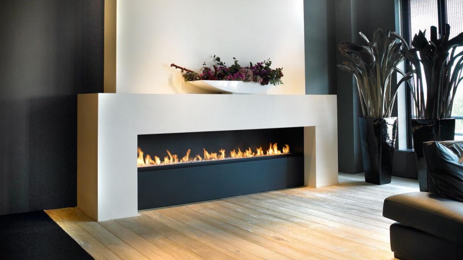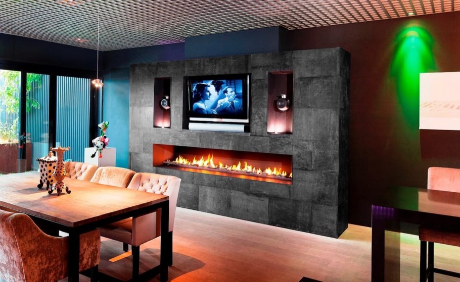 Узкий современный камин