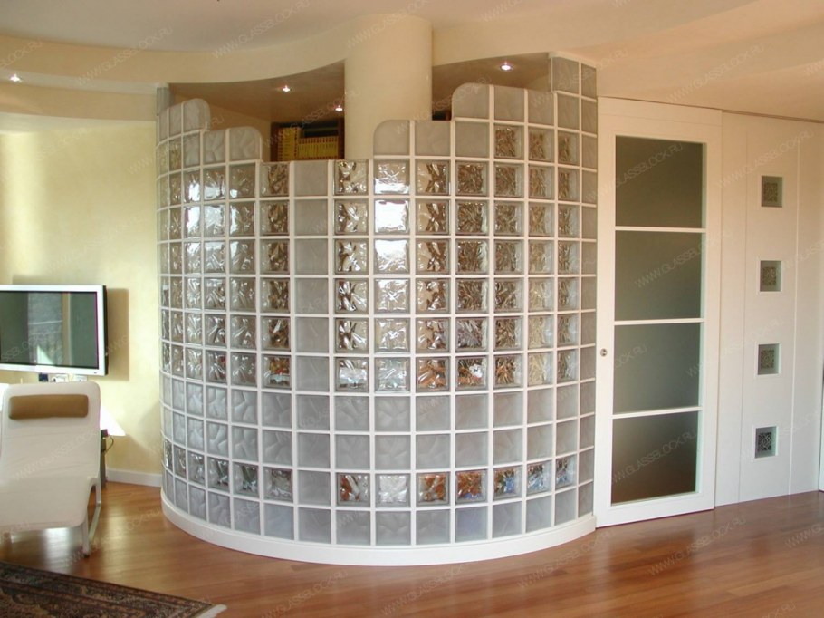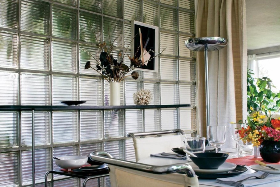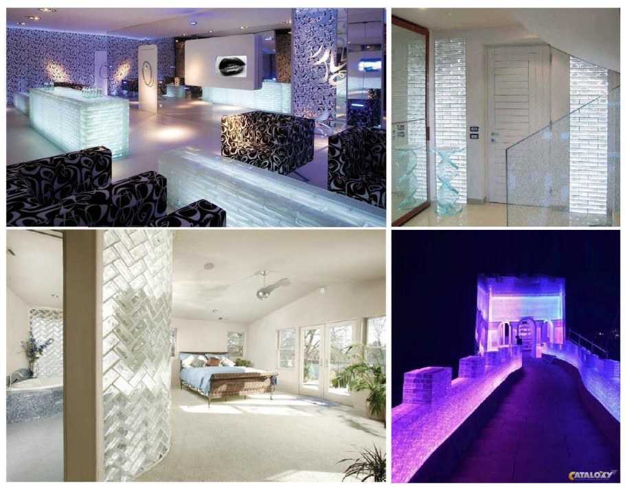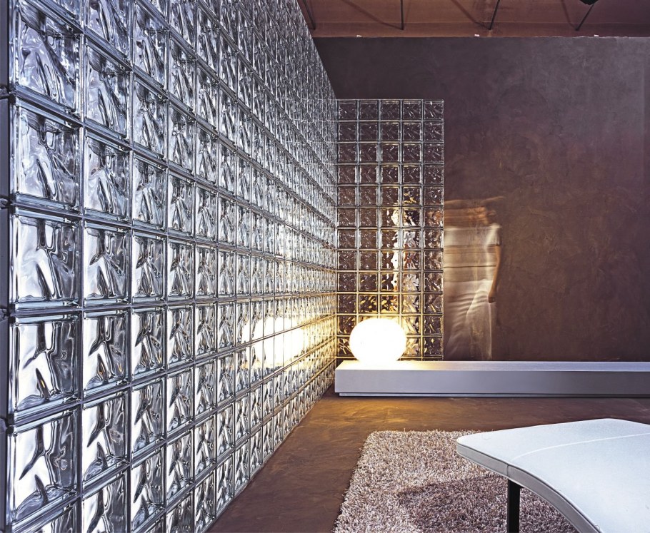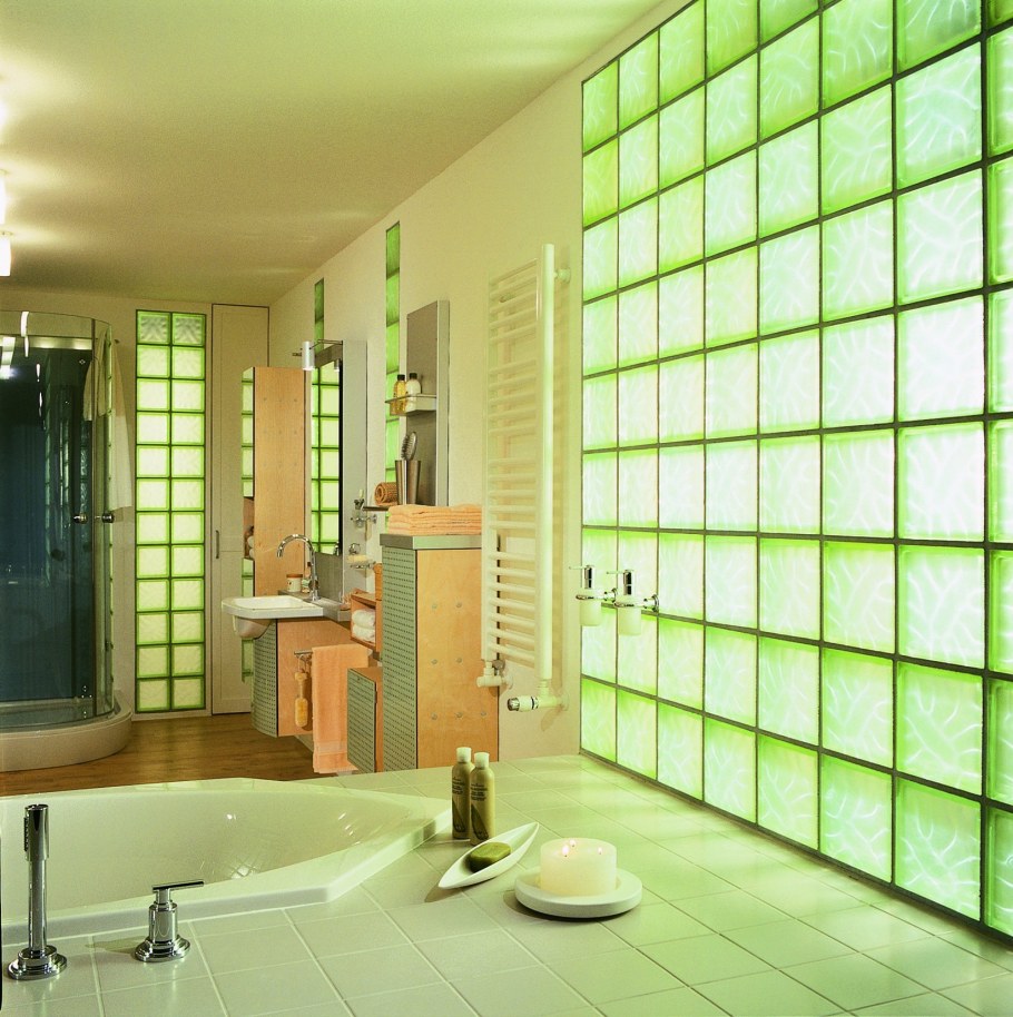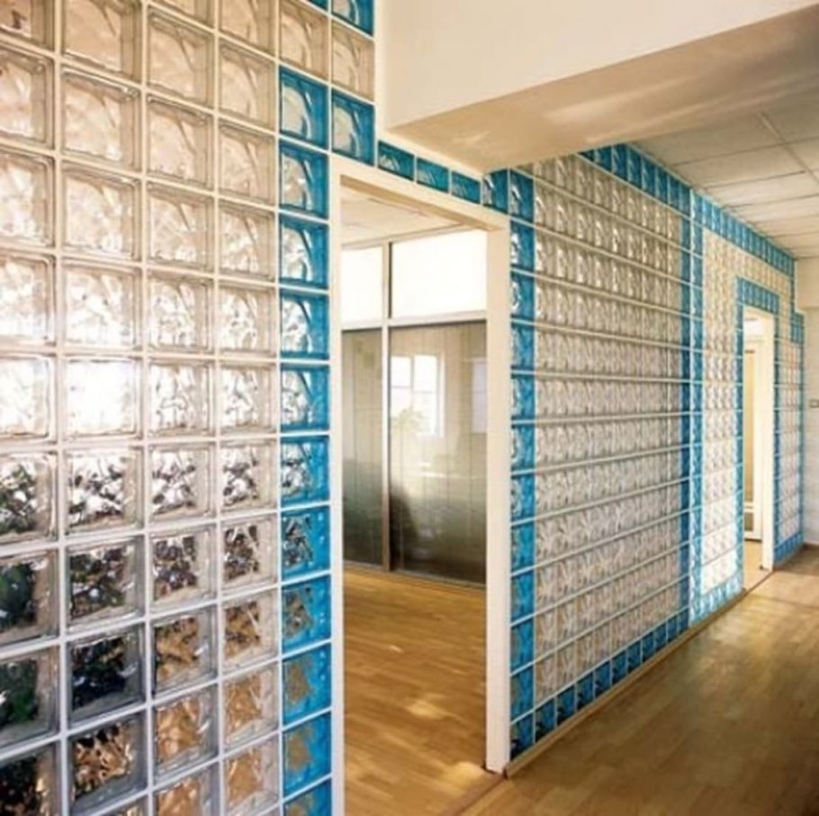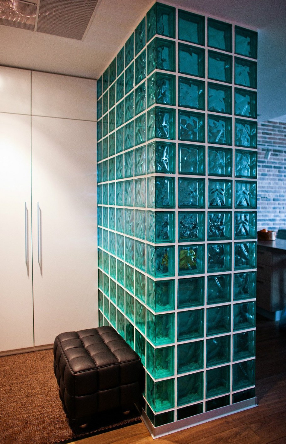 Стеклянные кирпичи и стеклоблоки в интерьере (83 фото)