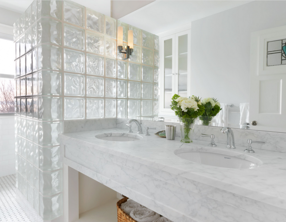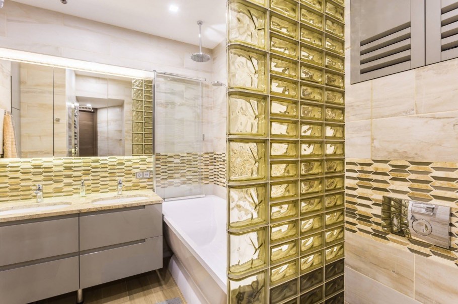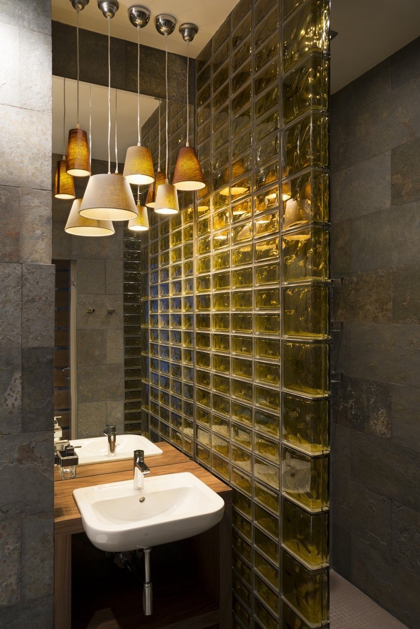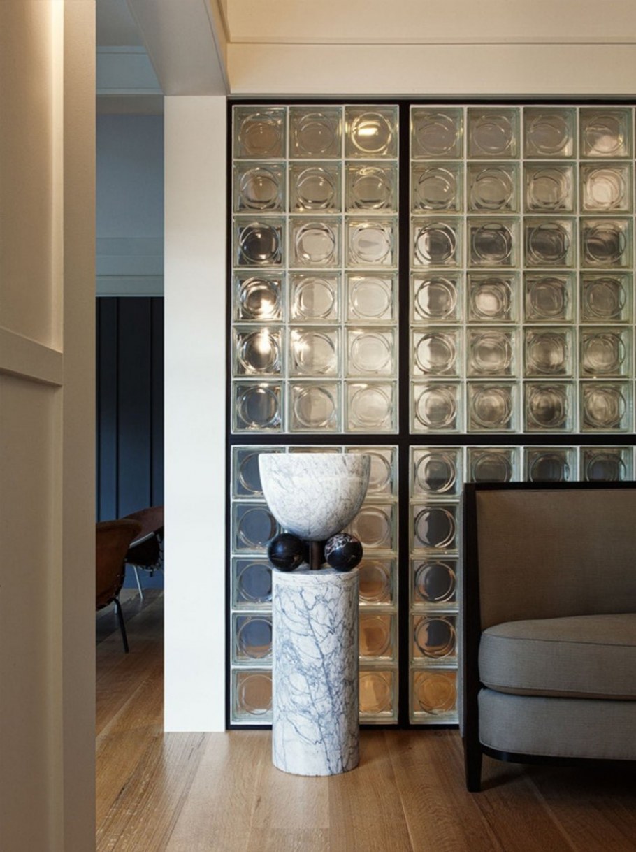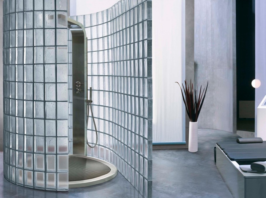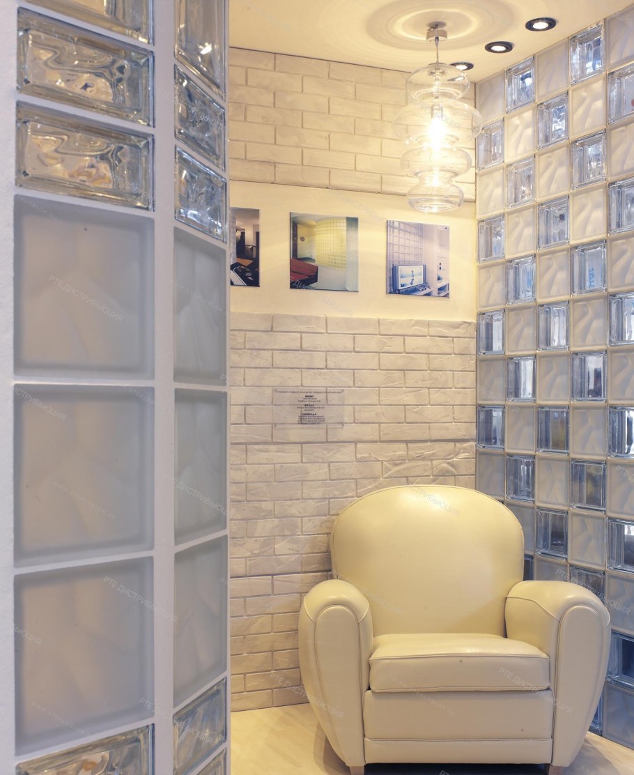 Стеклянные кирпичи и стеклоблоки в интерьере (83 фото)
