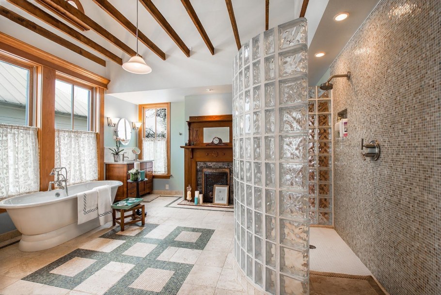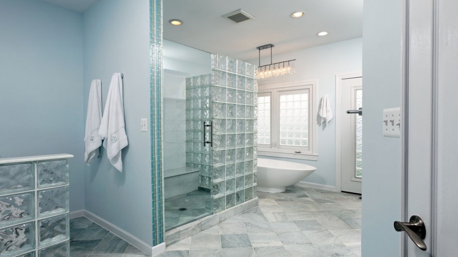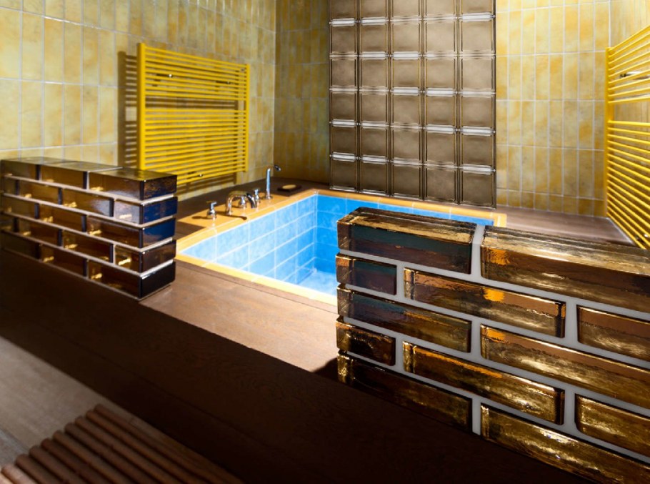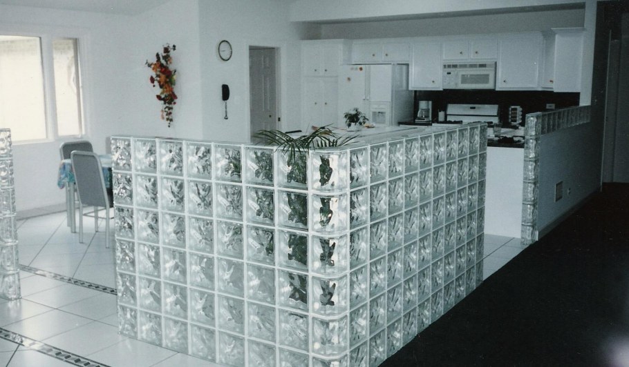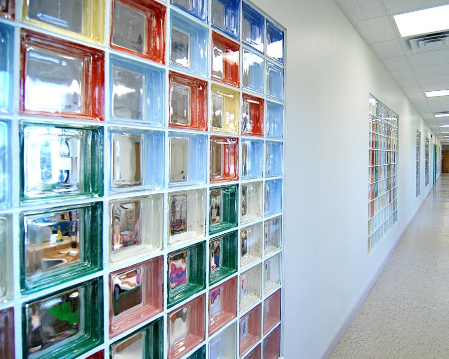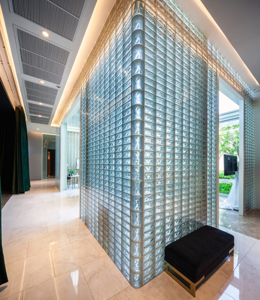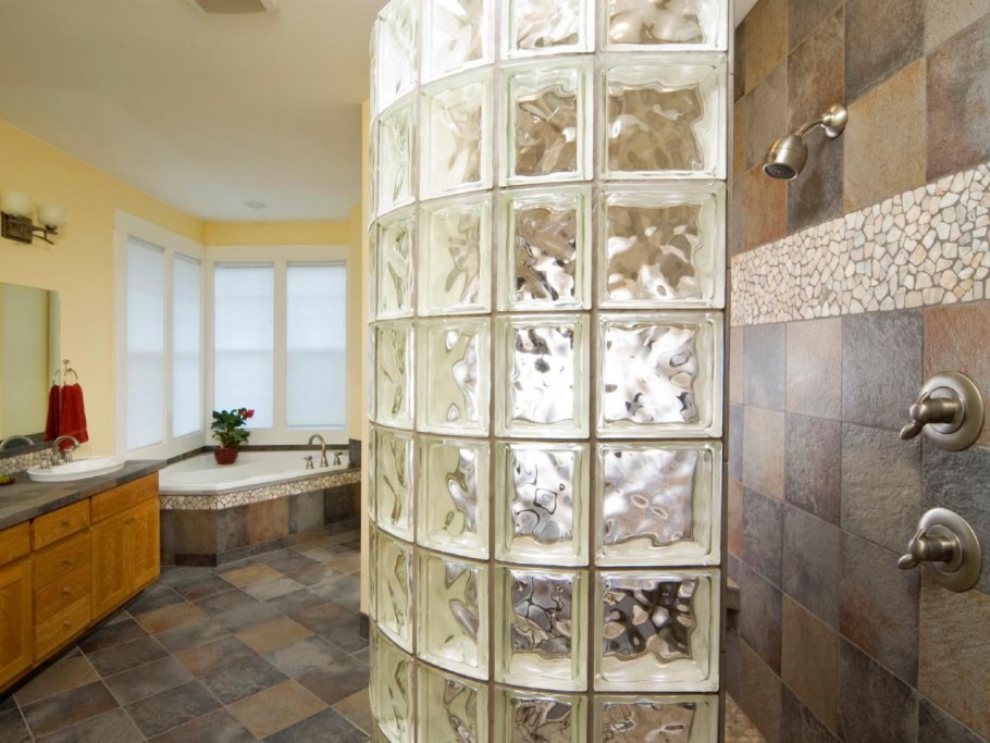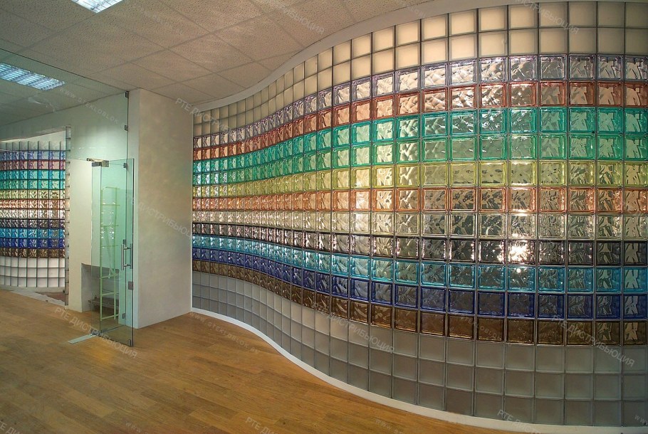 Стеклянные кирпичи и стеклоблоки в интерьере (83 фото)