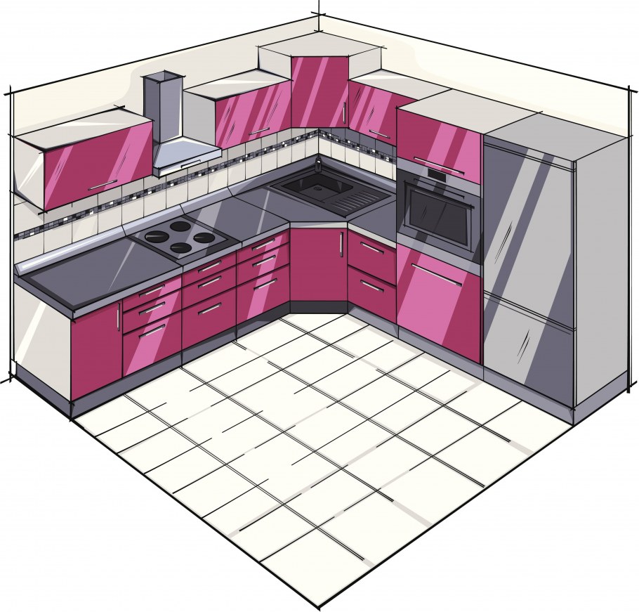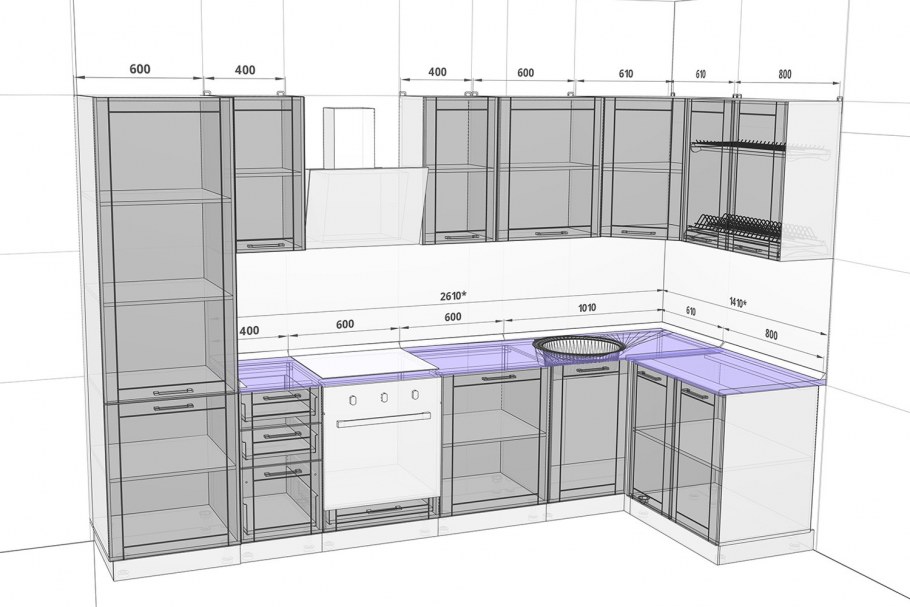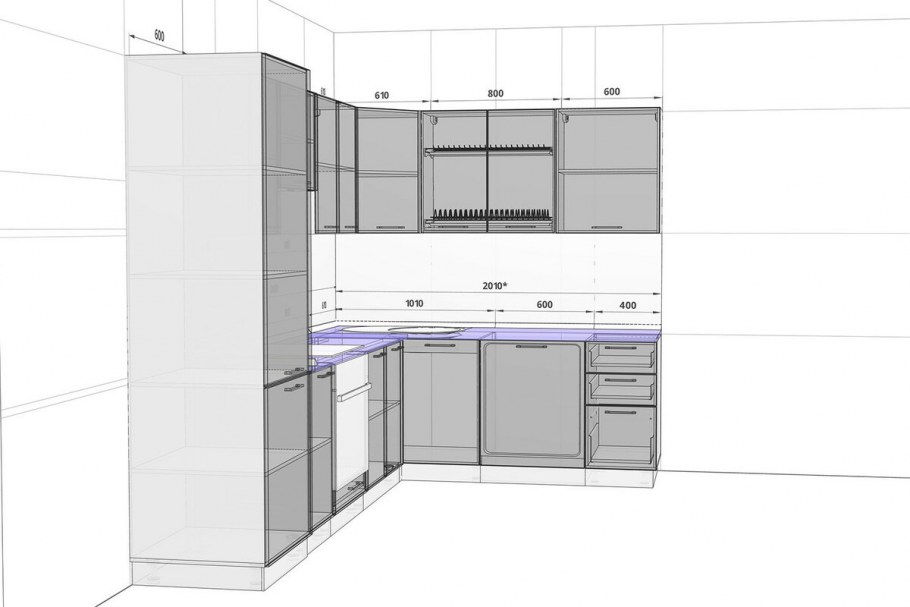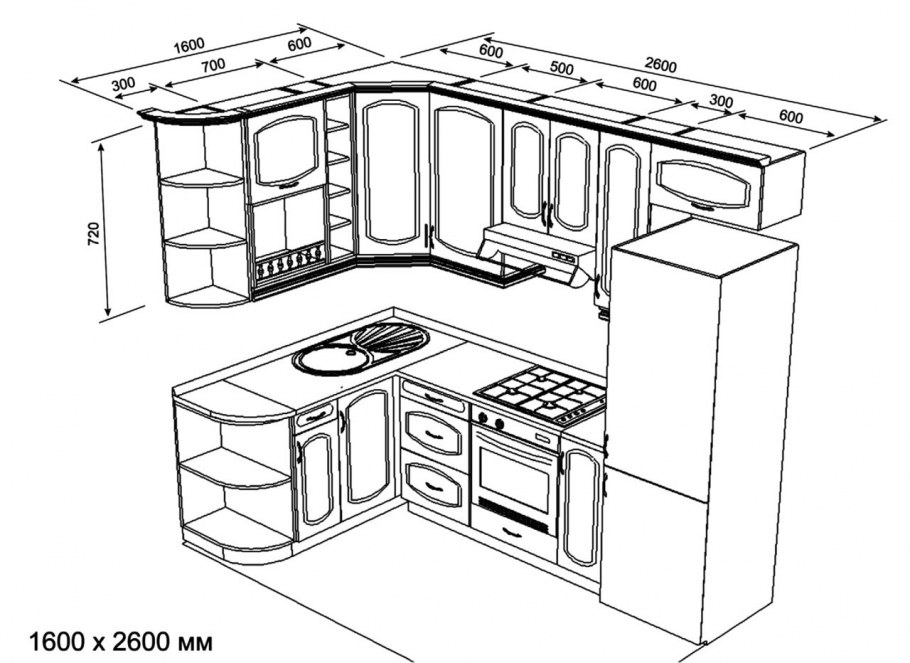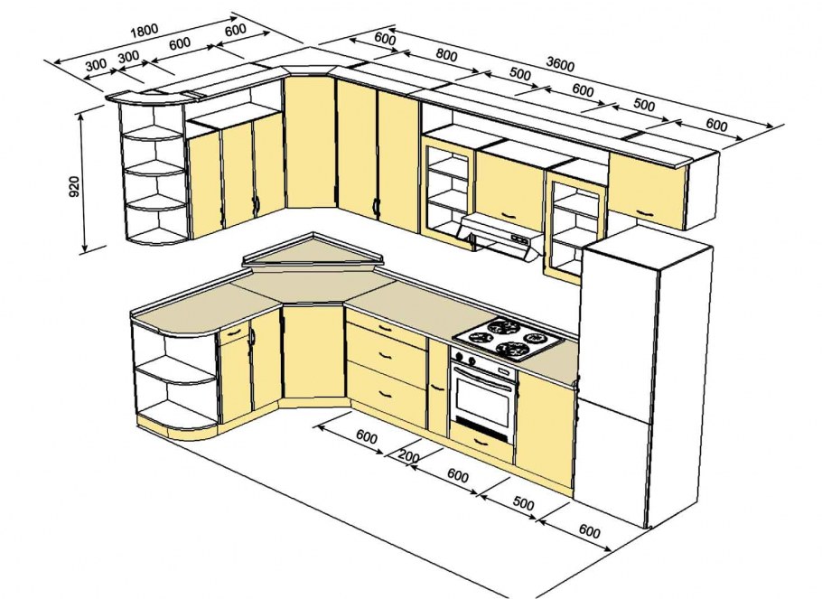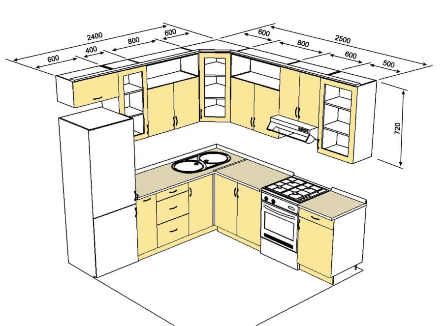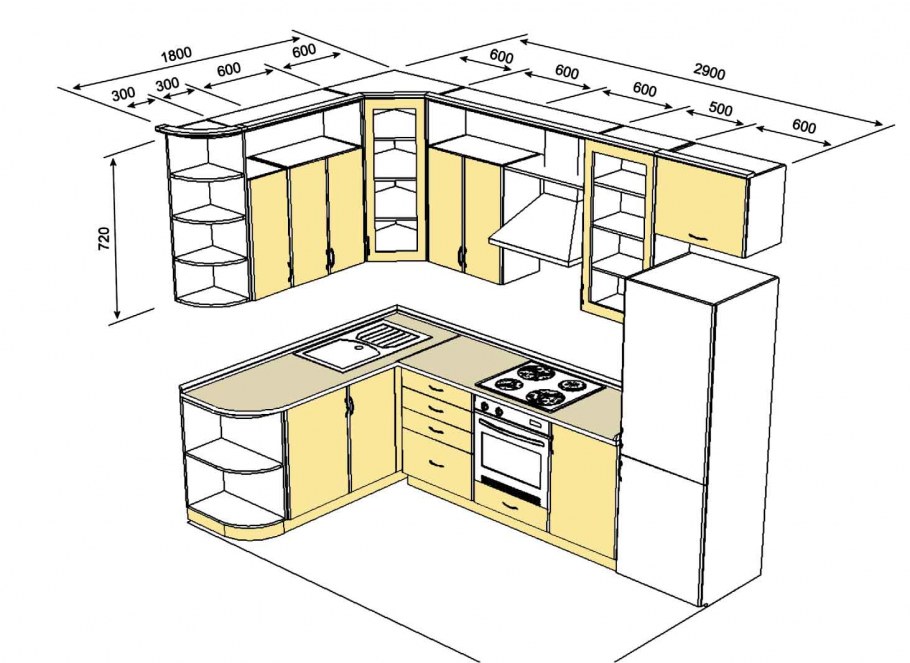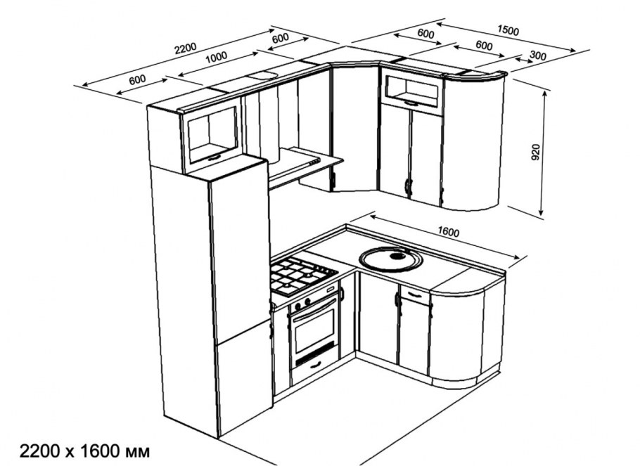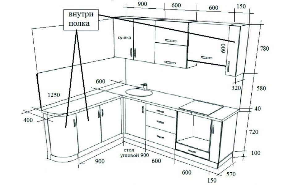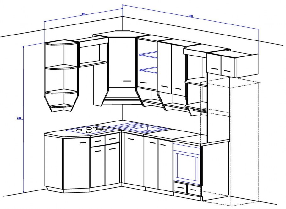 Кухонный мебель угловой 210х200 чертеж с размерами