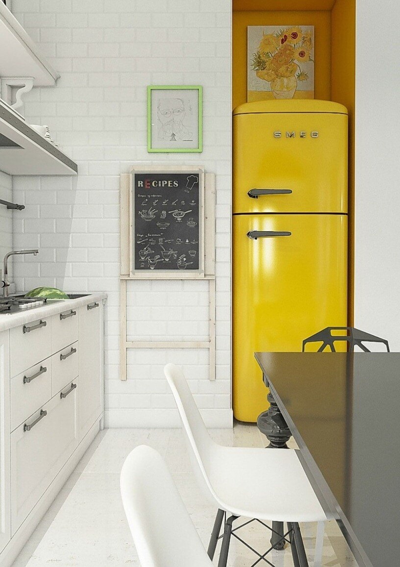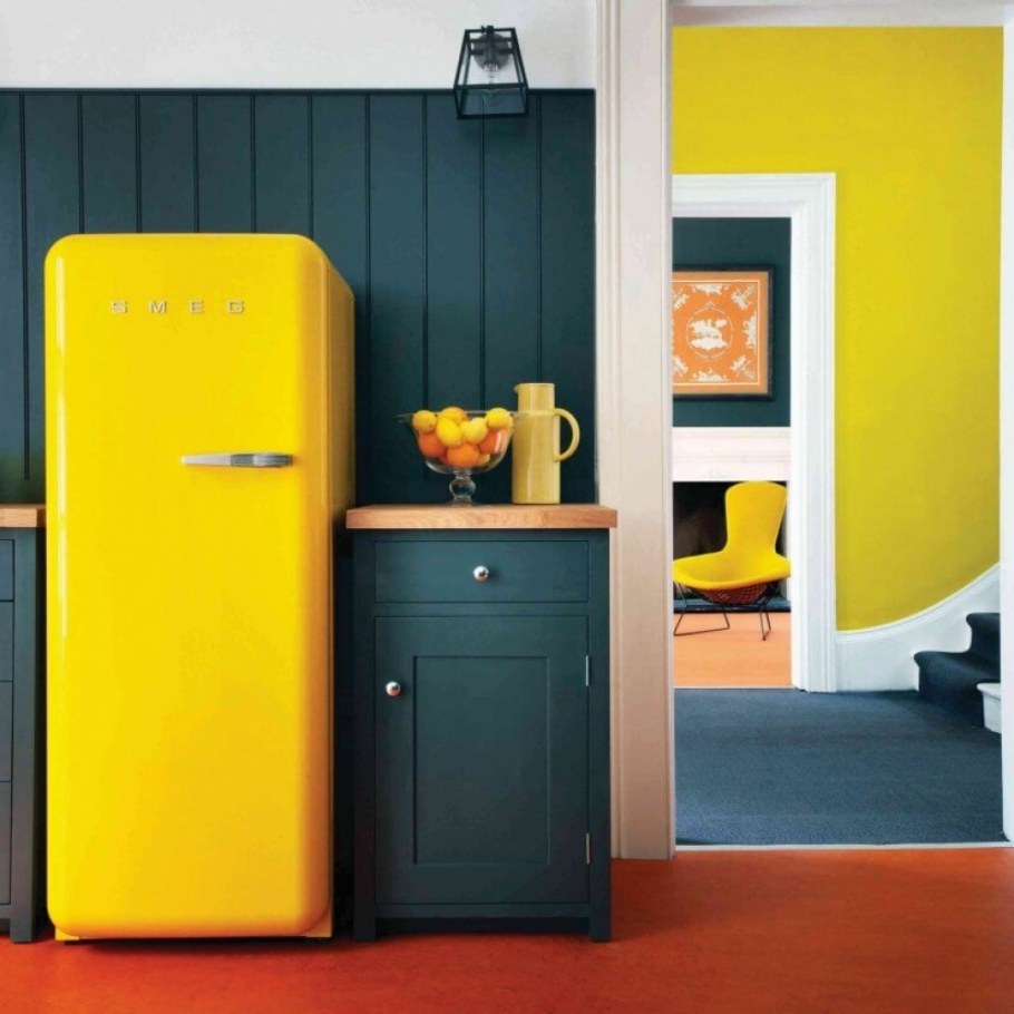 Холодильник Смег желтый в интерьере