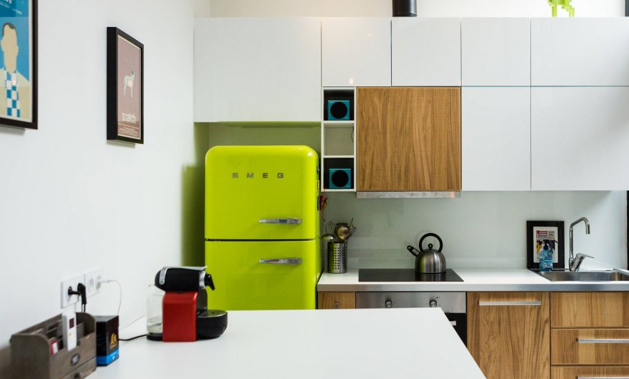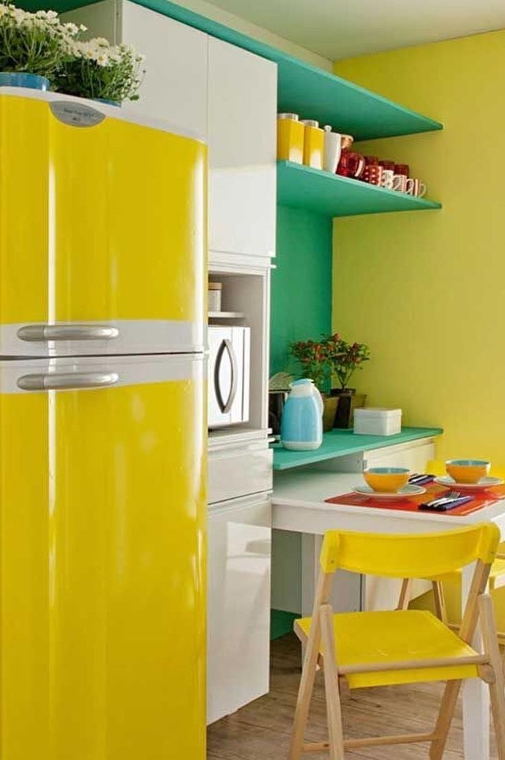 Цветной холодильник в интерьере