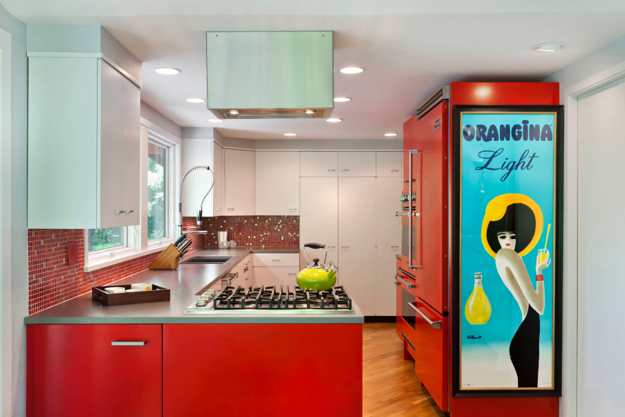 Кухня с ярким холодильником (79 фото)