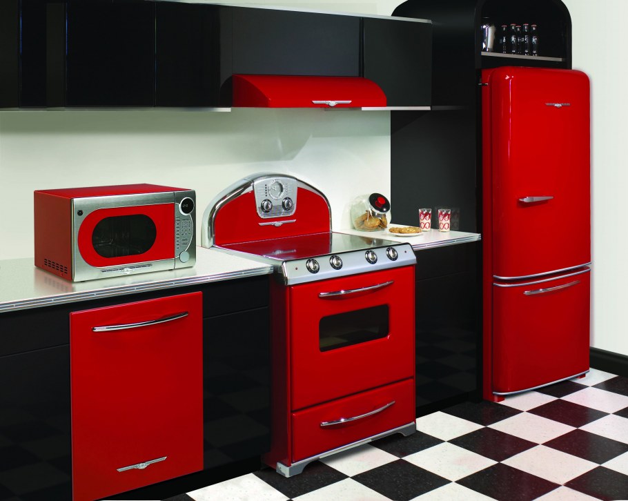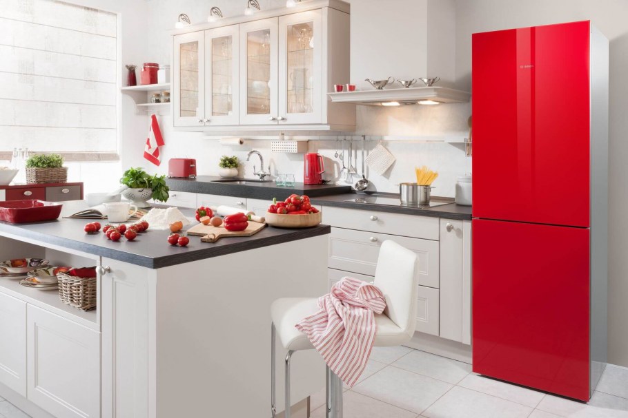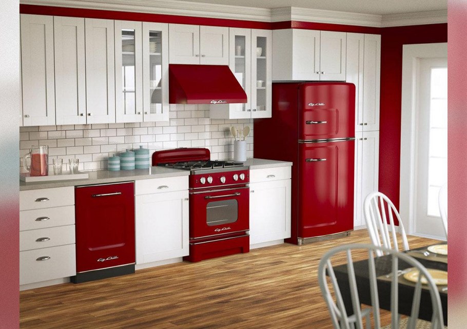 Красный холодильник в интерьере