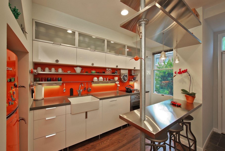 Маленькая кухня в оранжевая интерьере