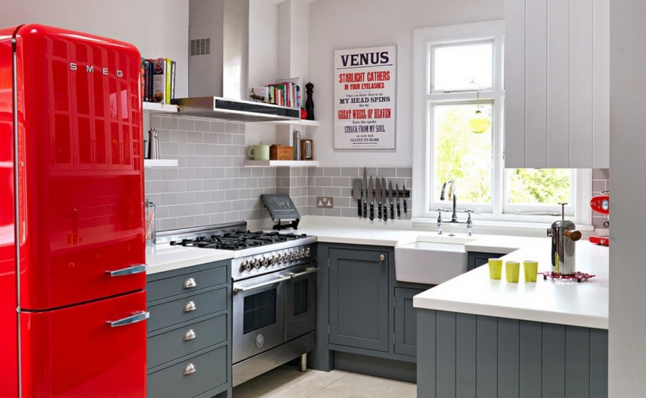Красный холодильник Смег в интерьере