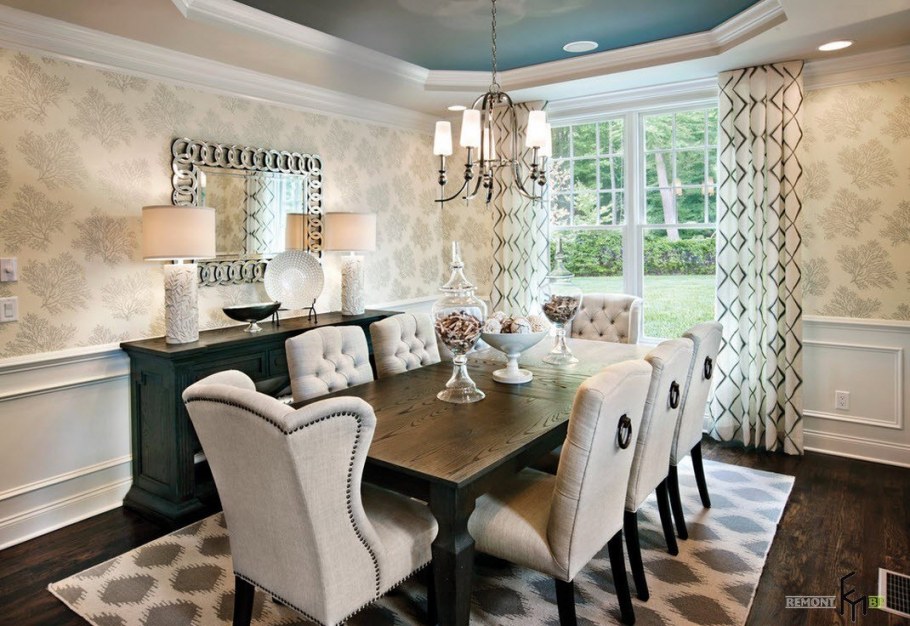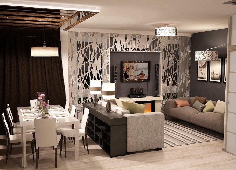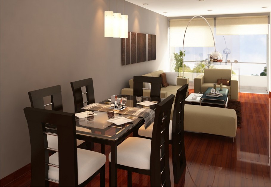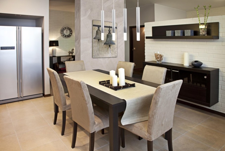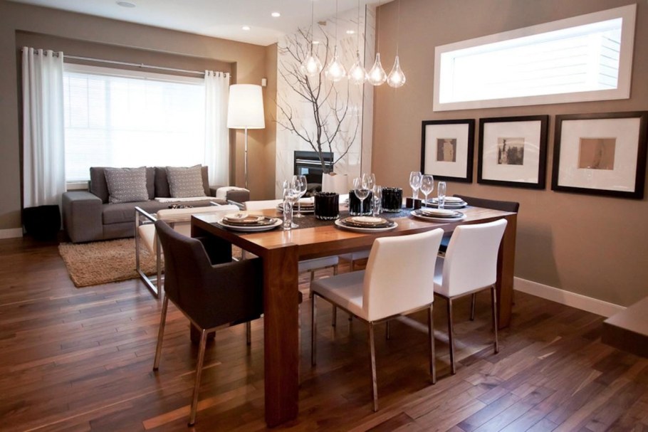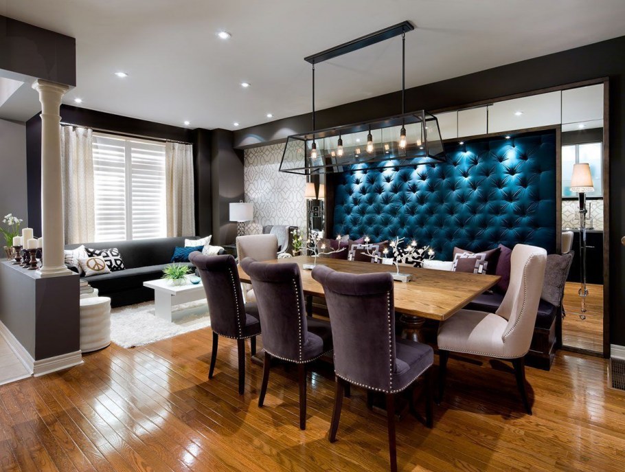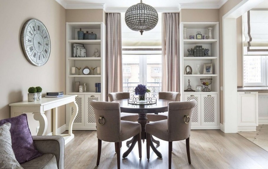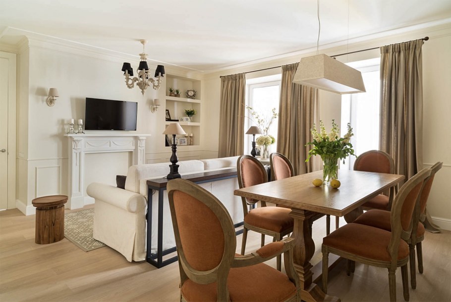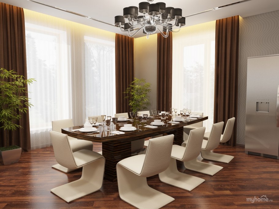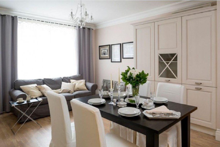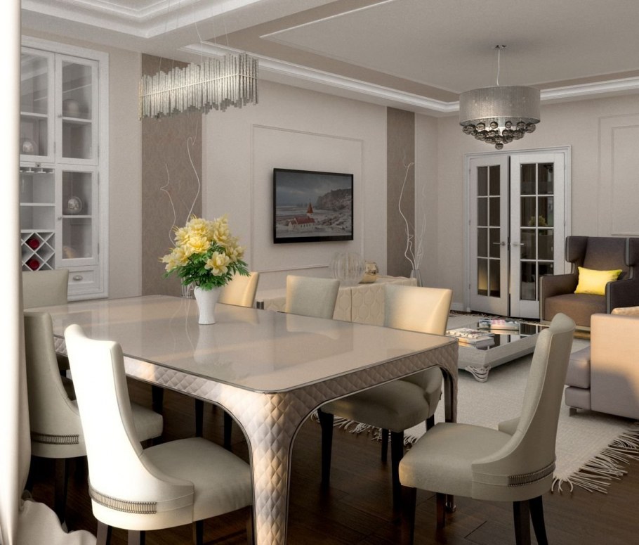 Мебель для обеденной зоны в гостиной в интерьере (80 фото)