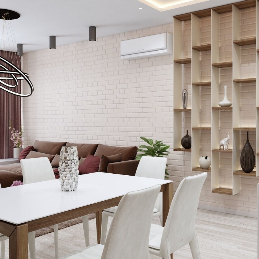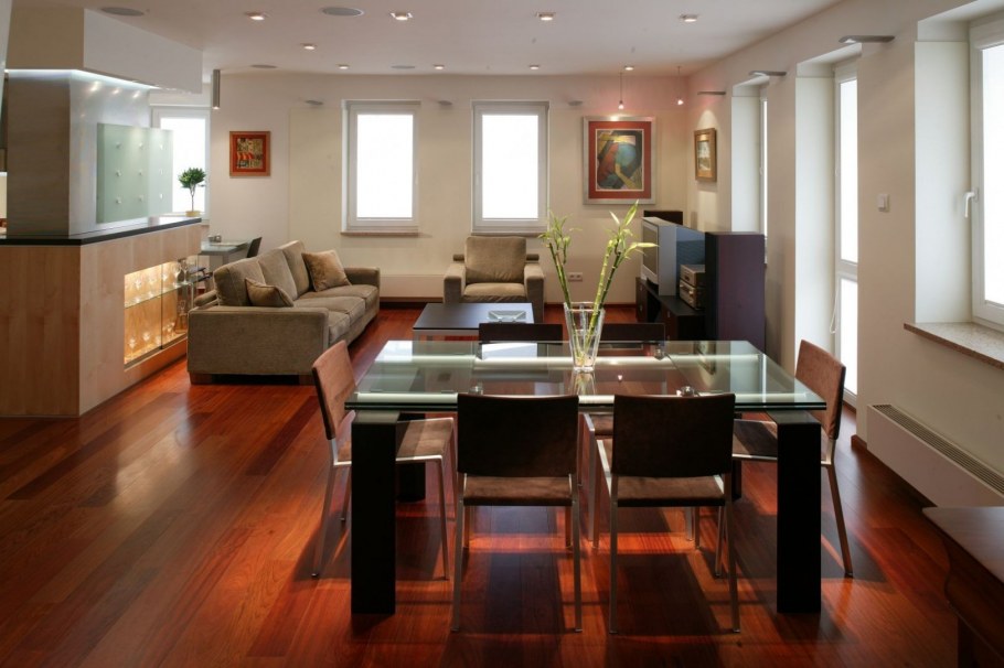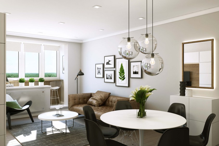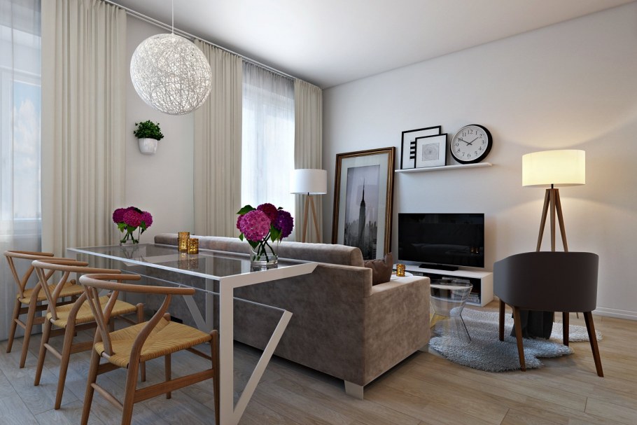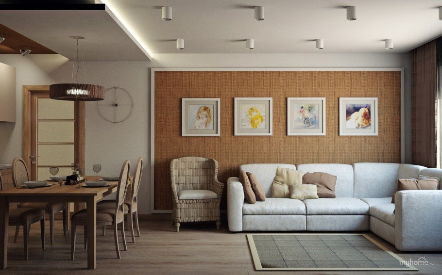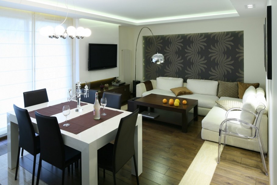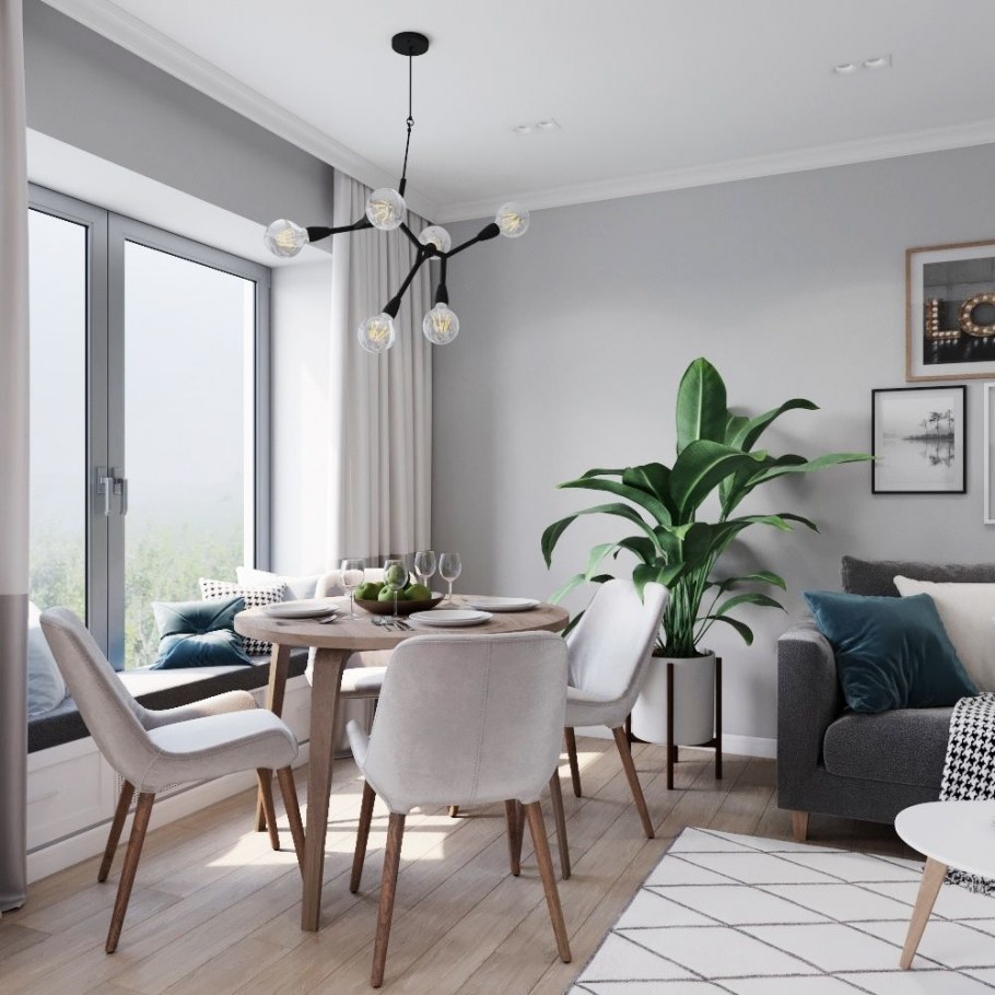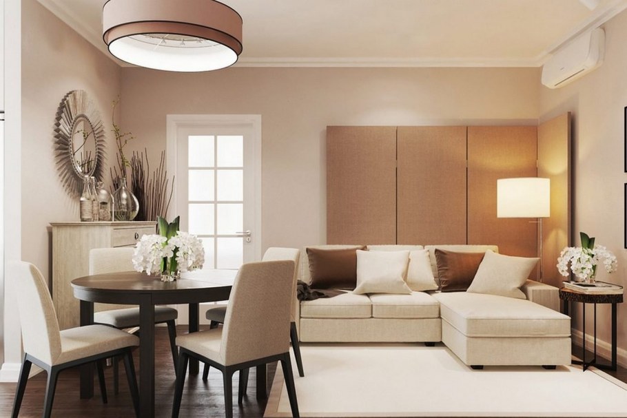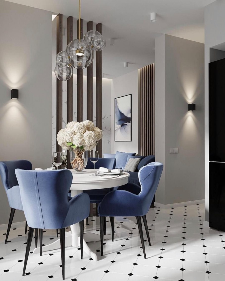 Мебель для обеденной зоны в гостиной в интерьере (80 фото)