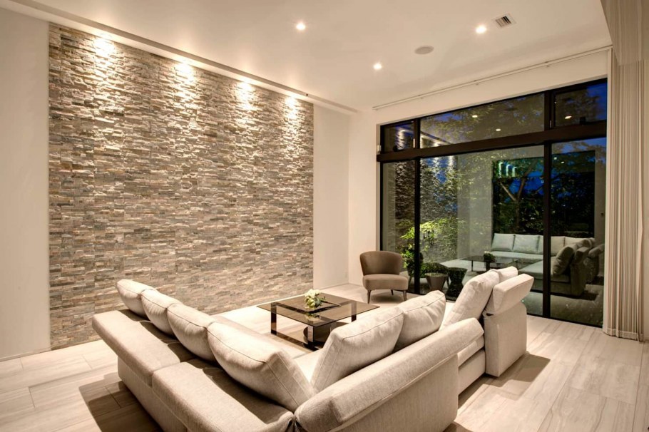 Природный камень в интерьере гостиной