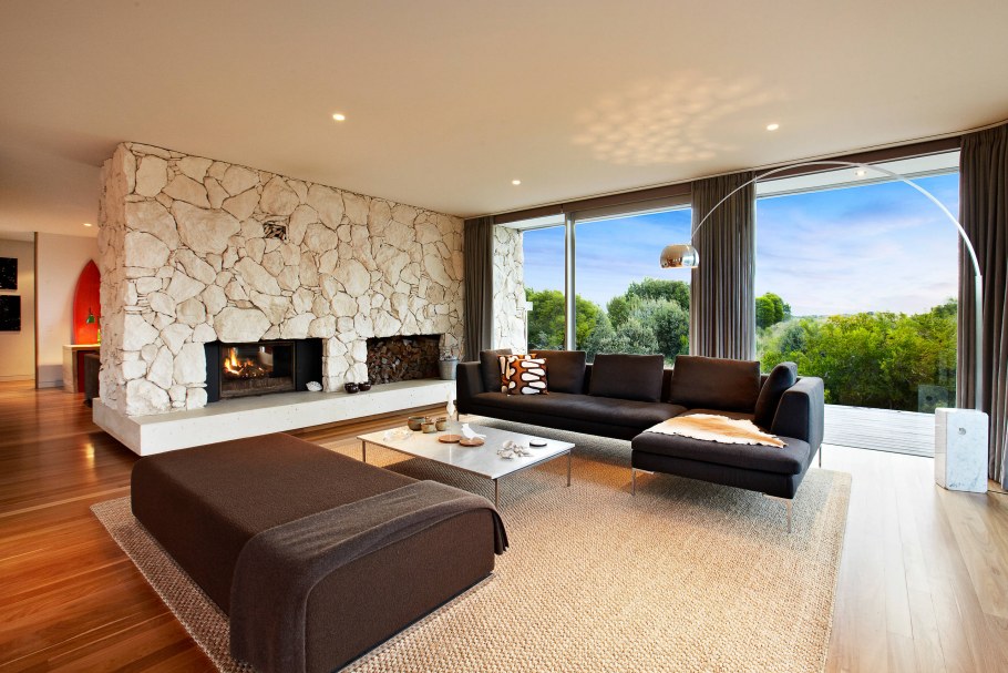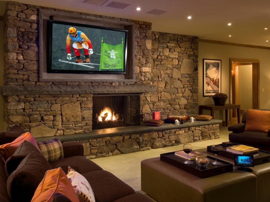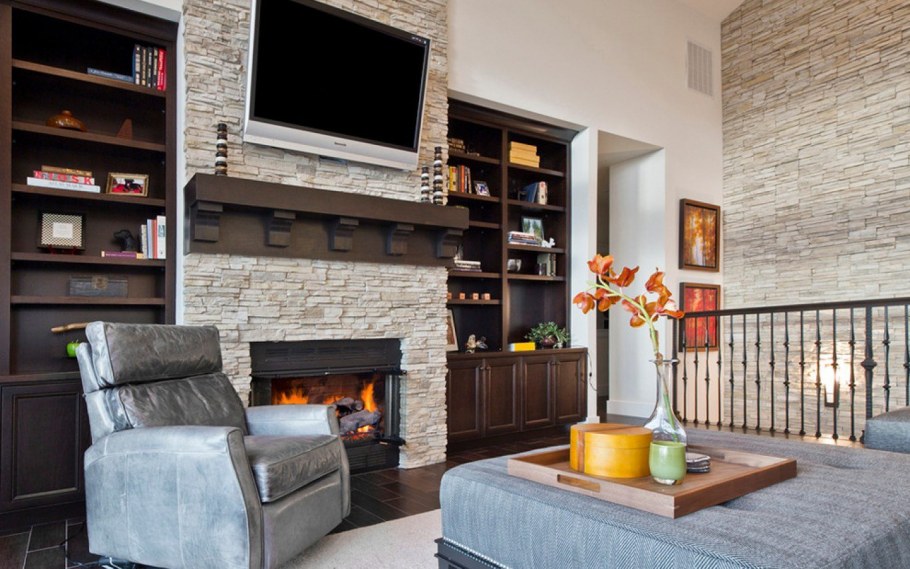 Камень в гостиной с камином