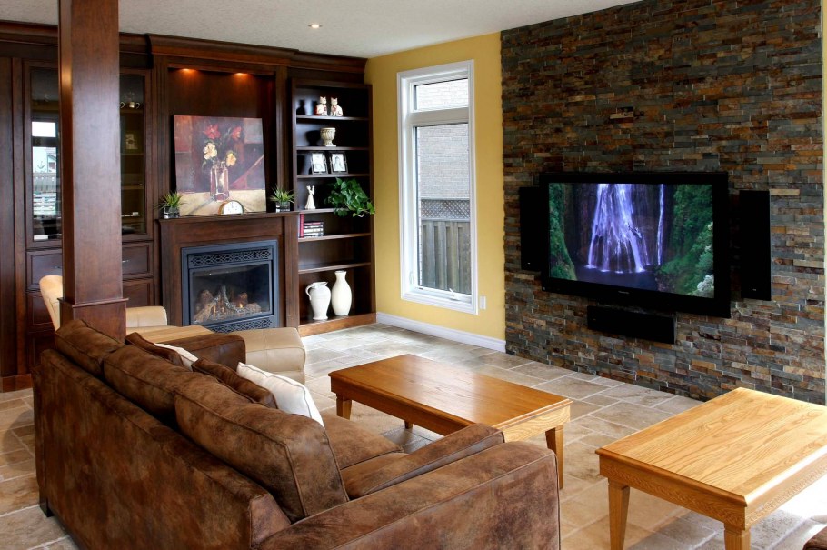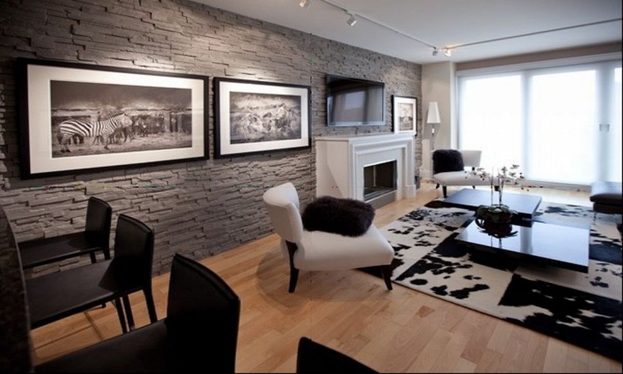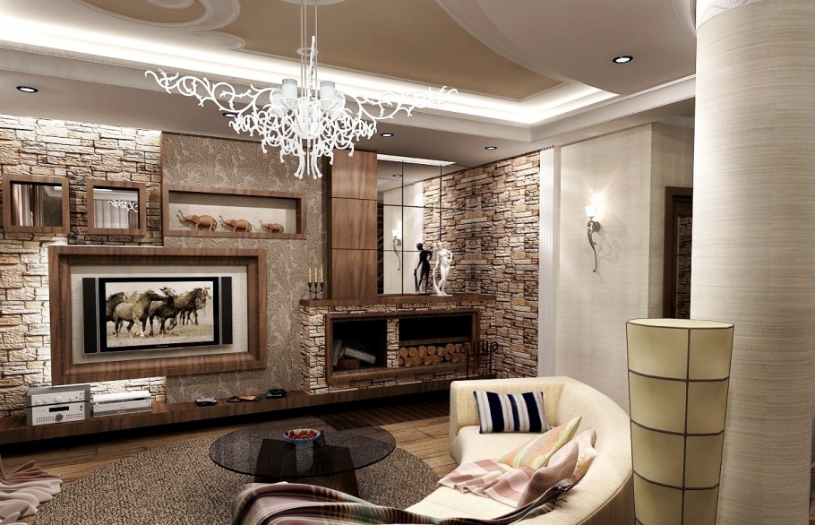 Отделка гостиной декоративным камнем