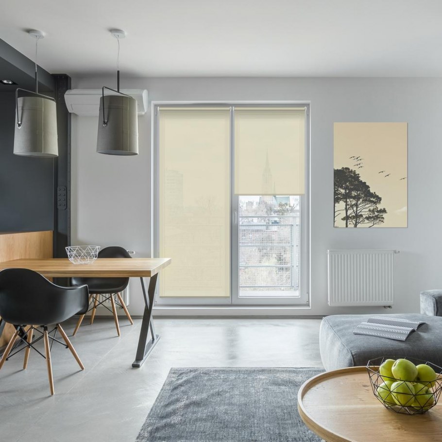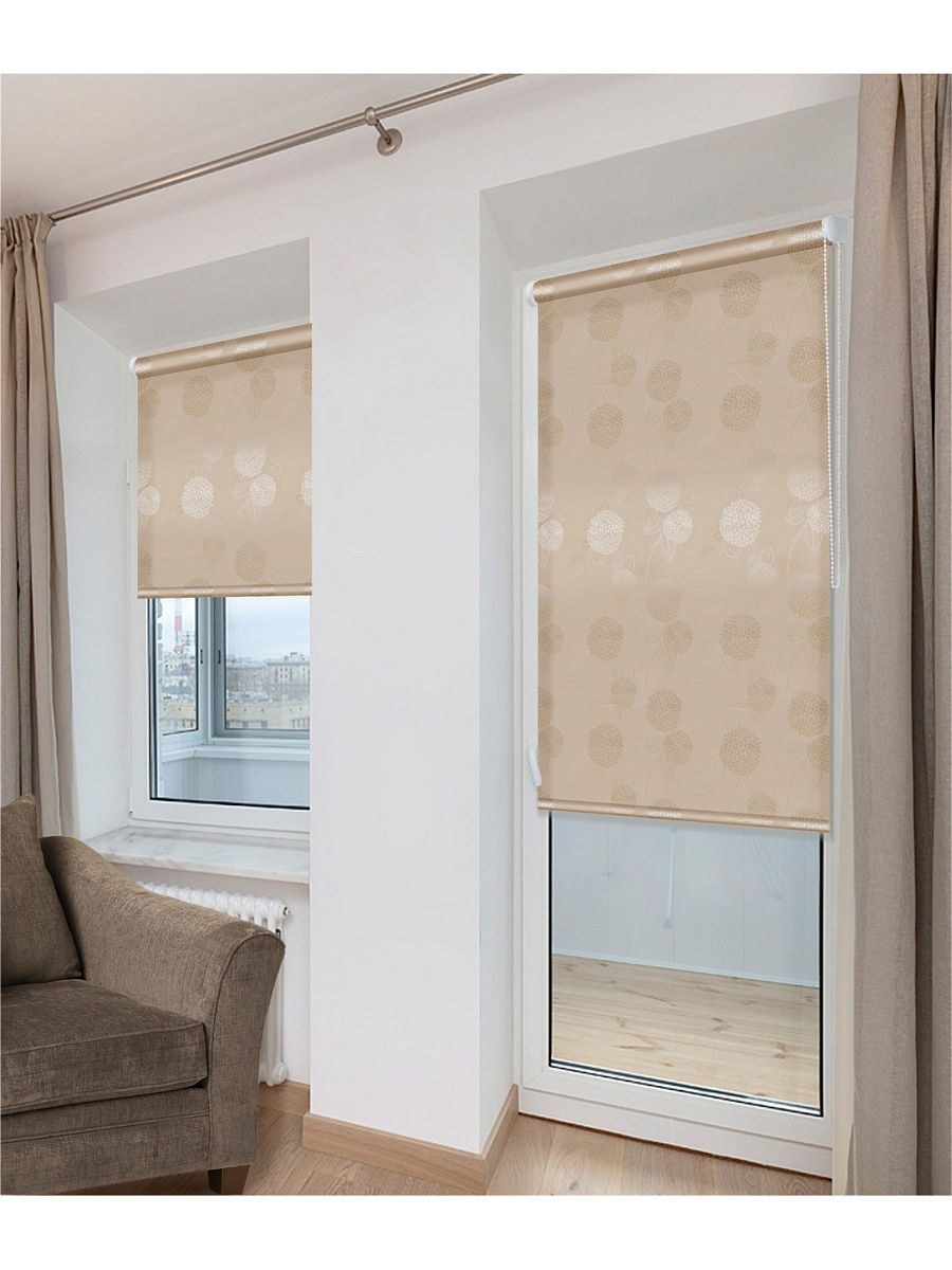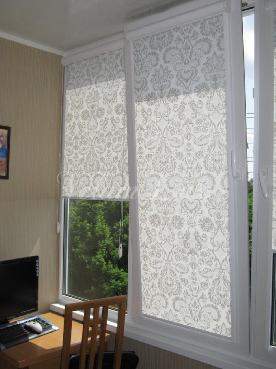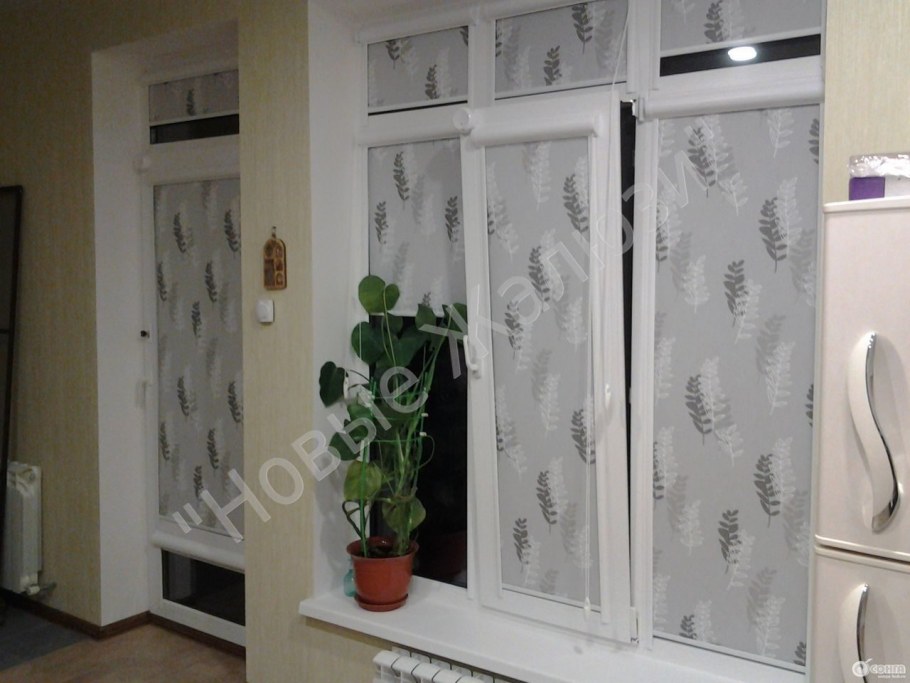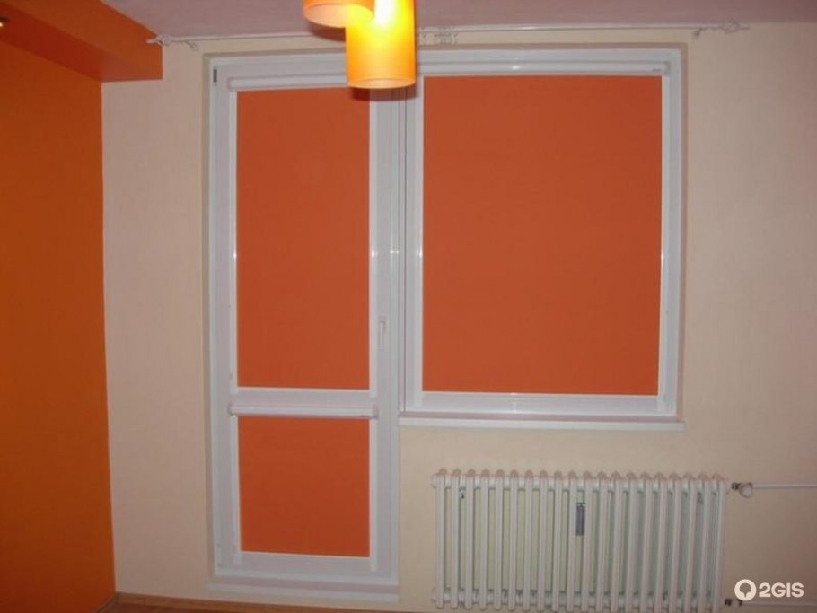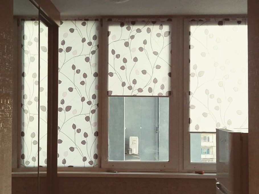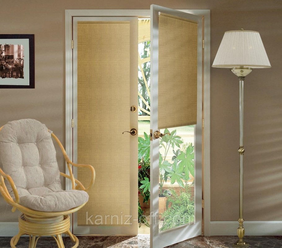 Рулонные шторы на балконную дверь в интерьере (77 фото)