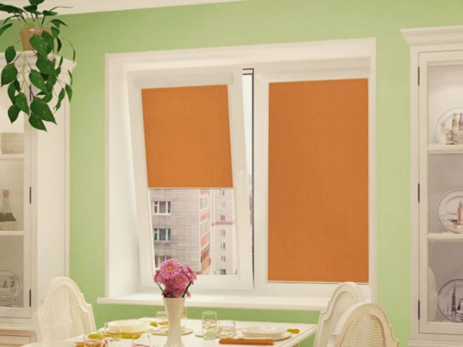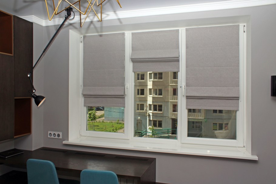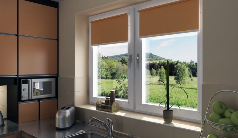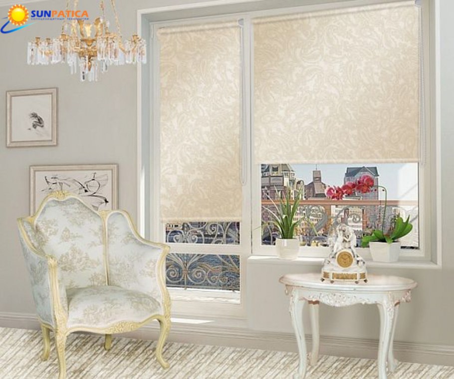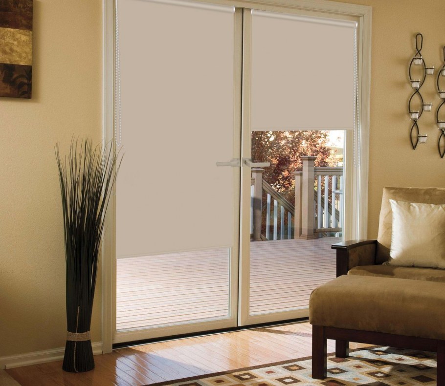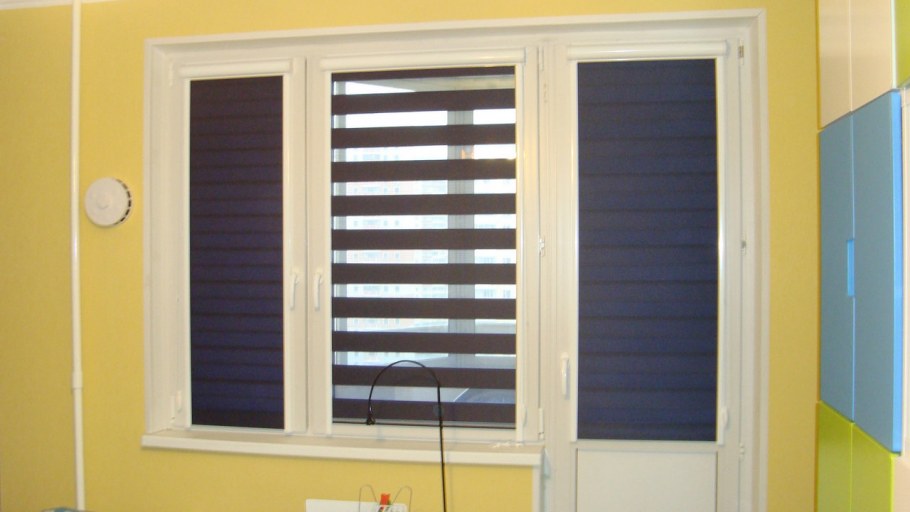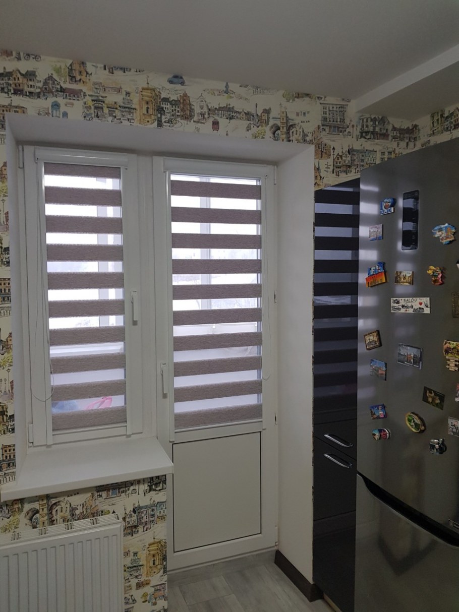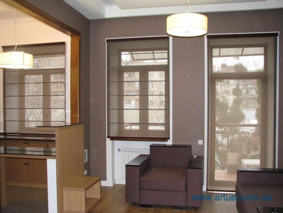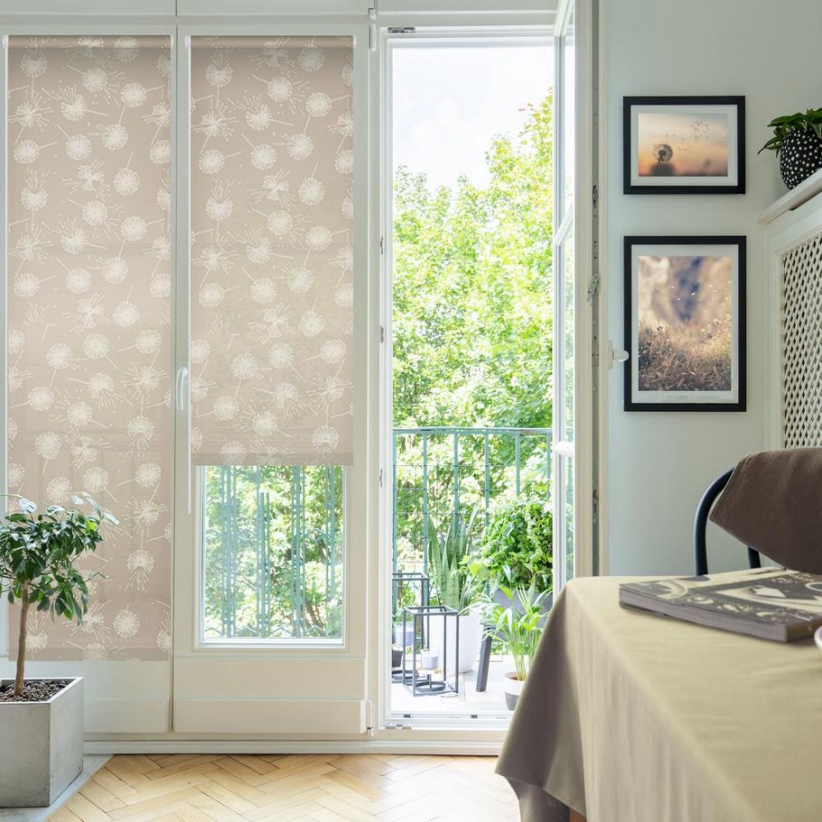 Рулонные шторы на балконную дверь в интерьере (77 фото)