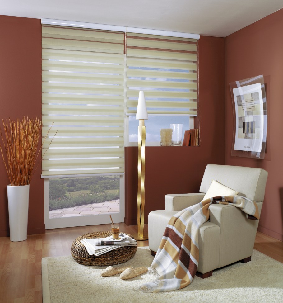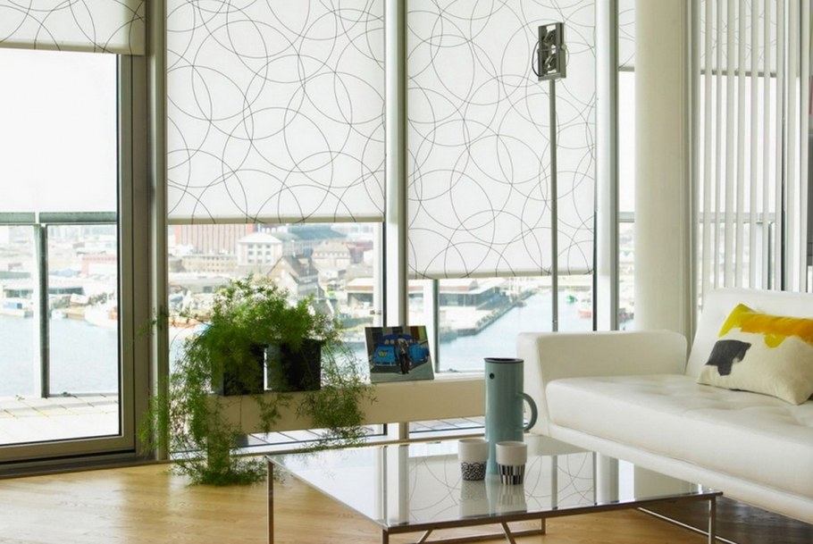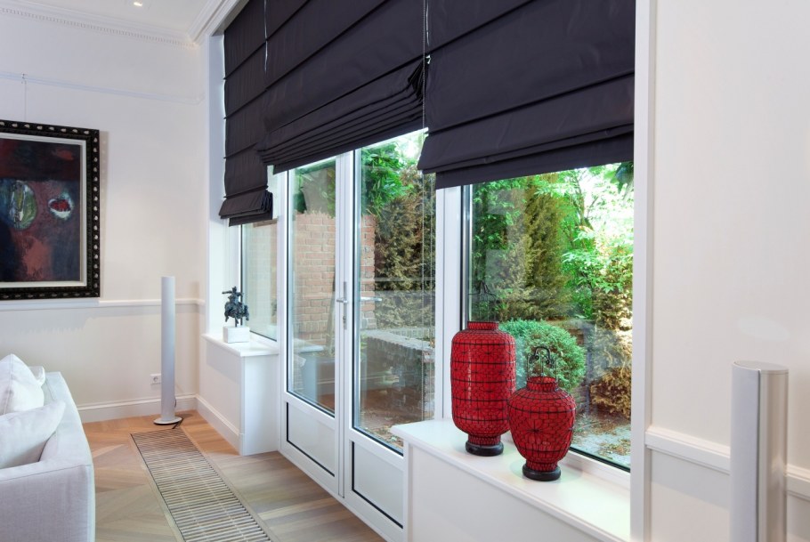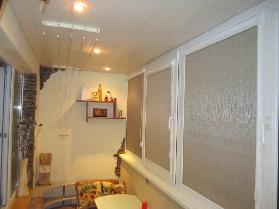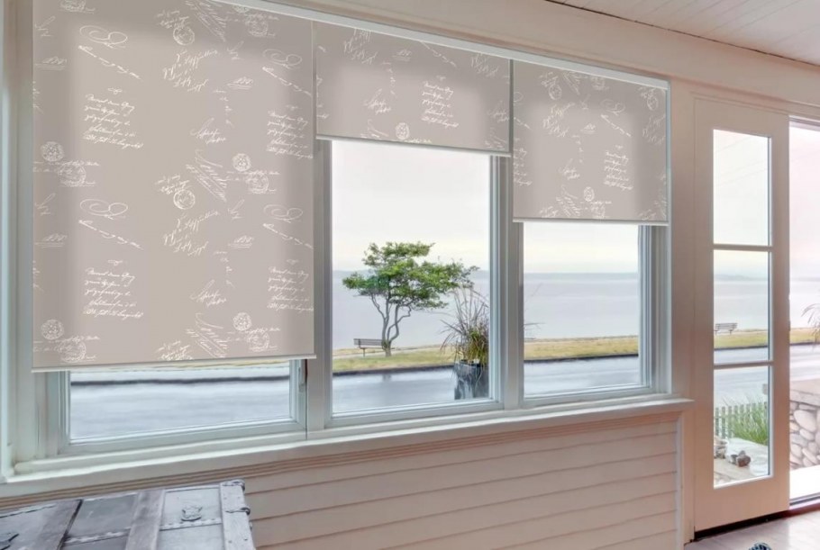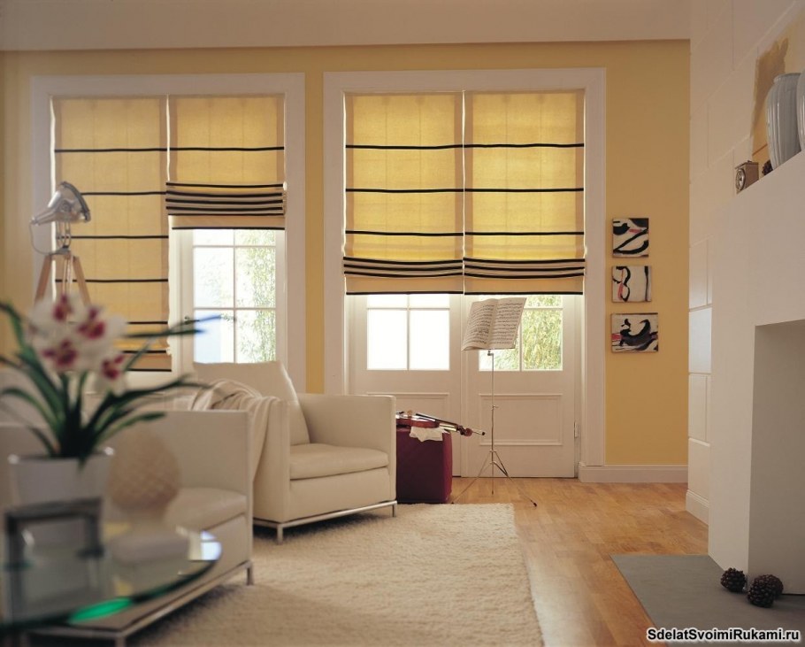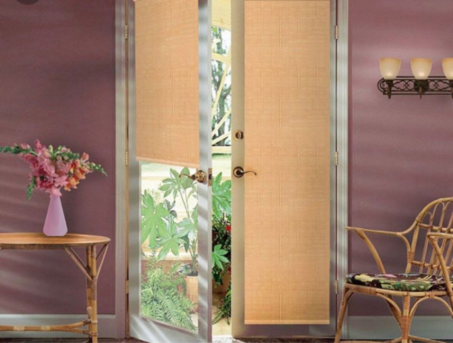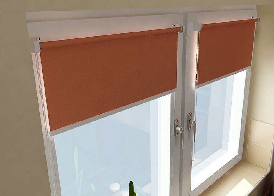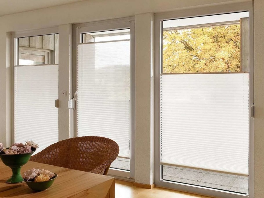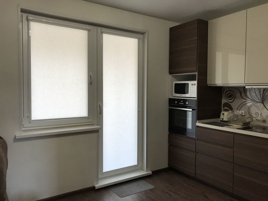 Рулонные шторы на балконную дверь в интерьере (77 фото)