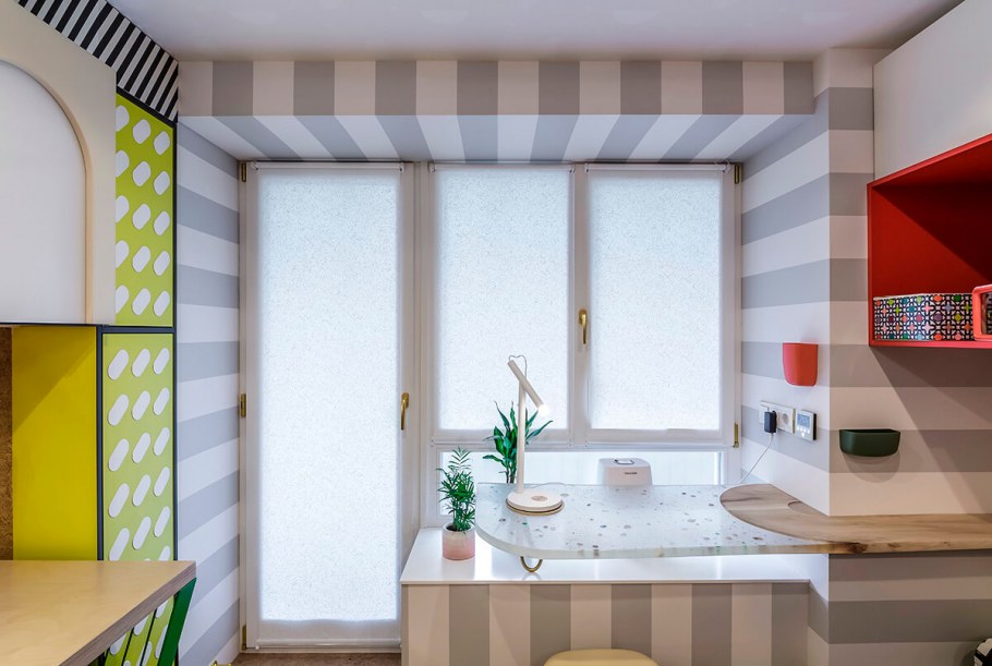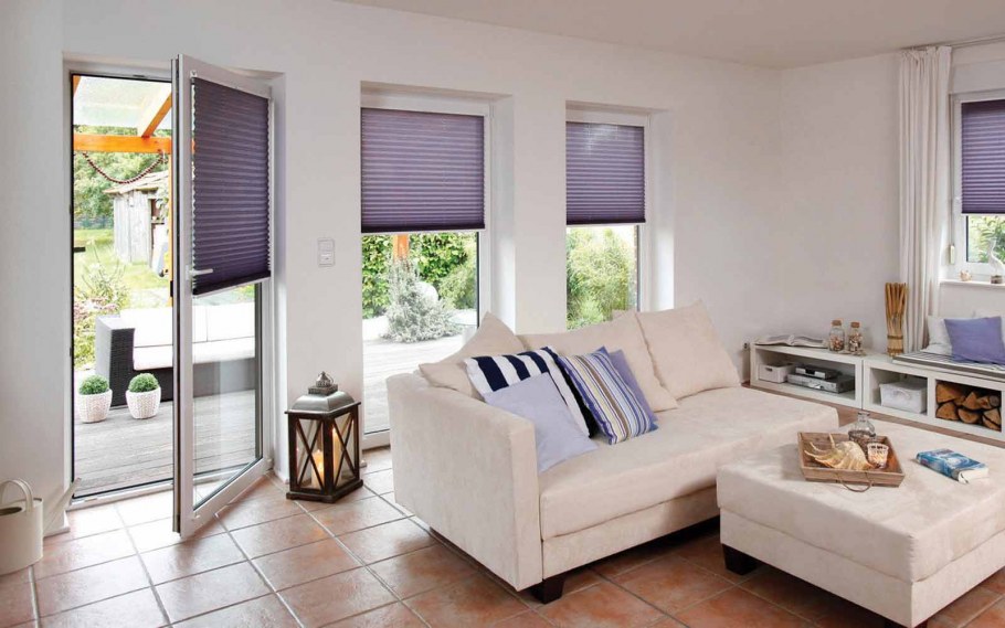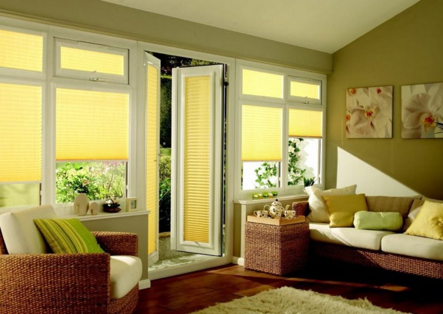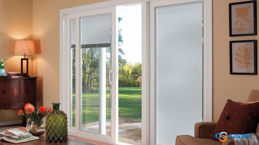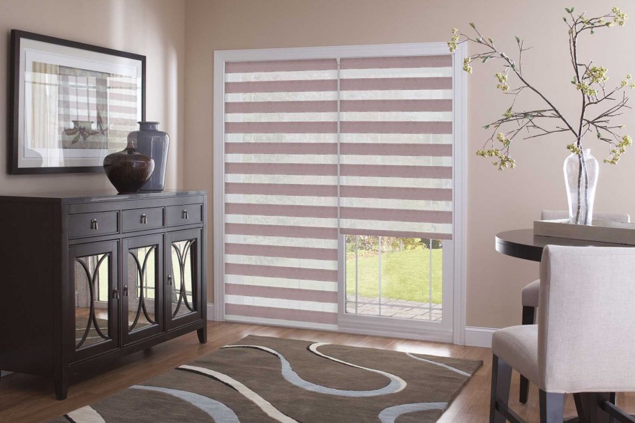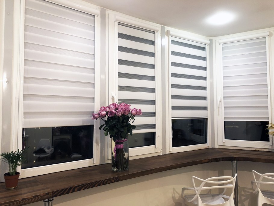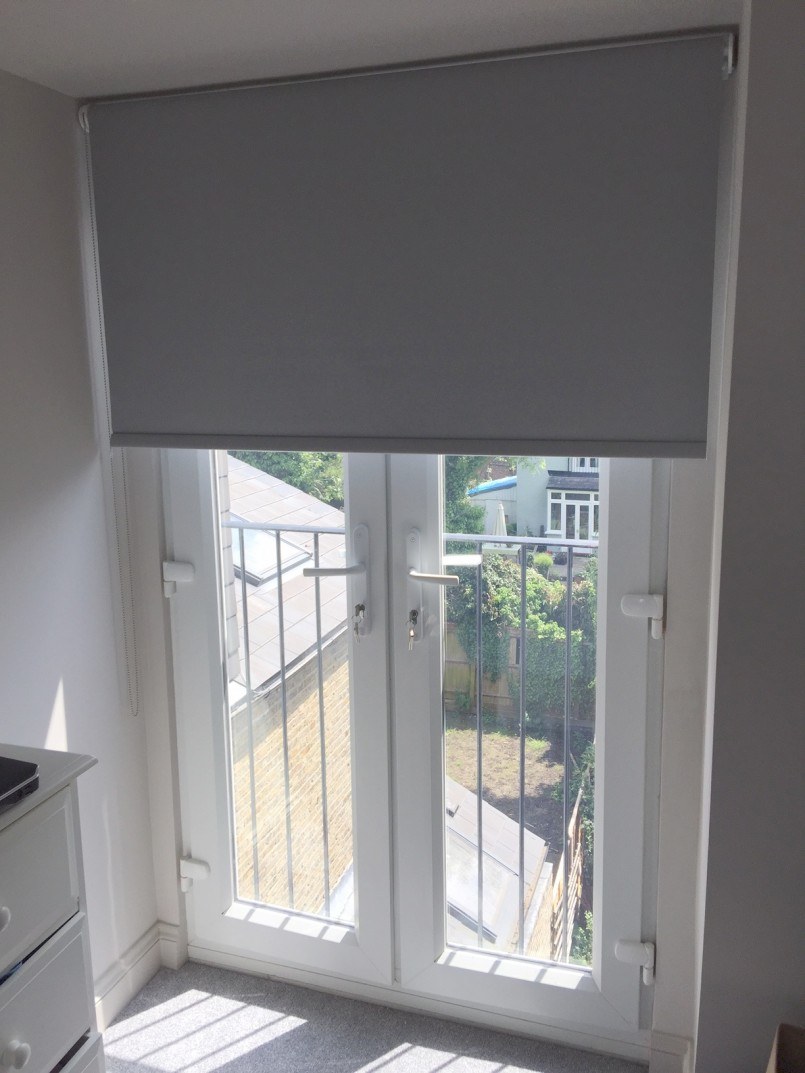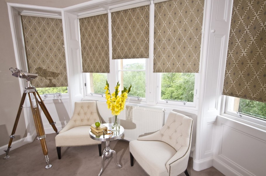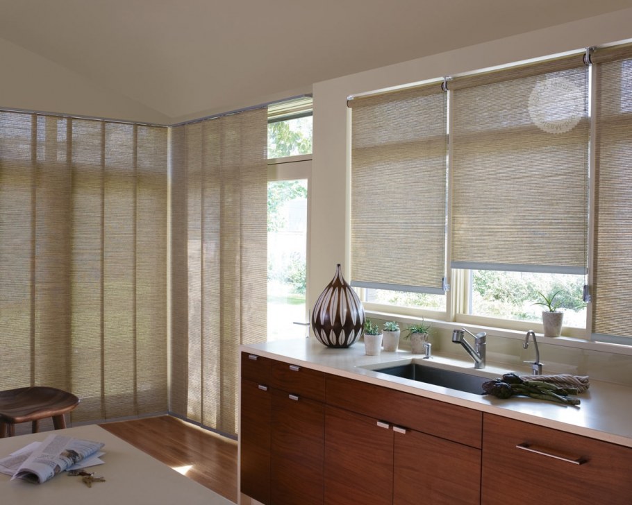 Рулонные шторы на балконную дверь в интерьере (77 фото)