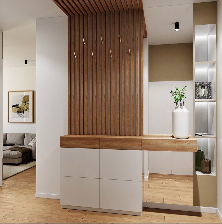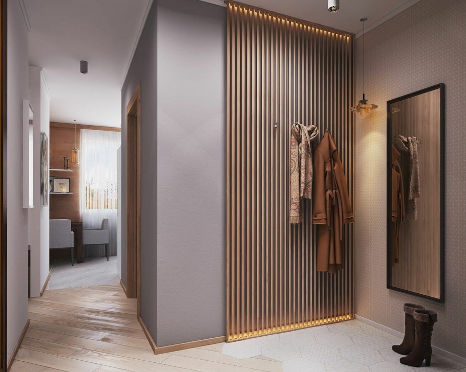 Прихожая с деревянными рейками