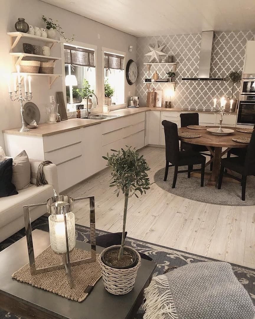 Скандинавский стиль в интерьере дома внутри кухня и зал (79 фото)