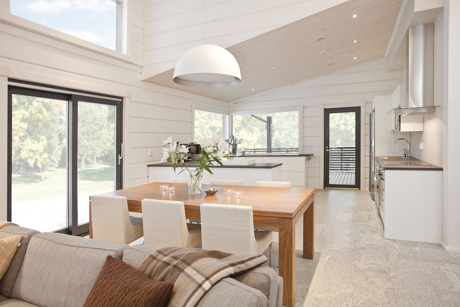 Кухня-гостиная в скандинавском стиле в загородном доме