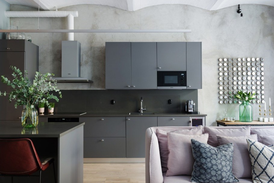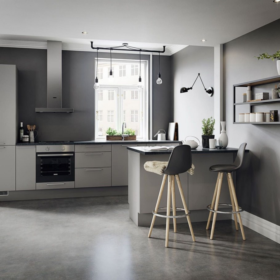 Серые стены в интерьере кухни