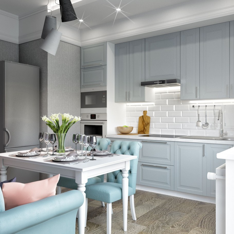Интерьер кухни в серо голубых тонах