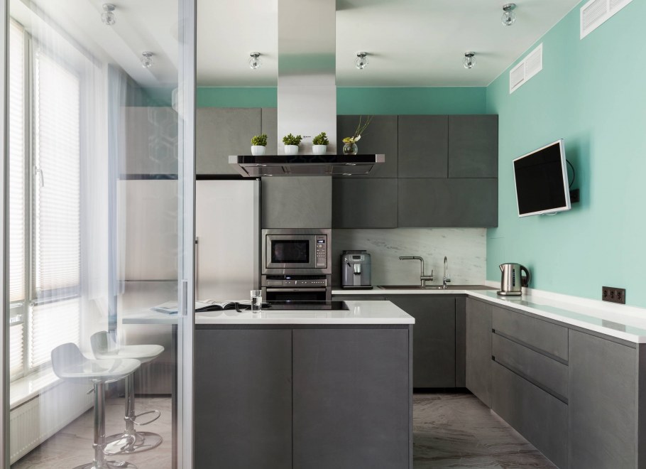 Бирюзовая кухня в интерьере