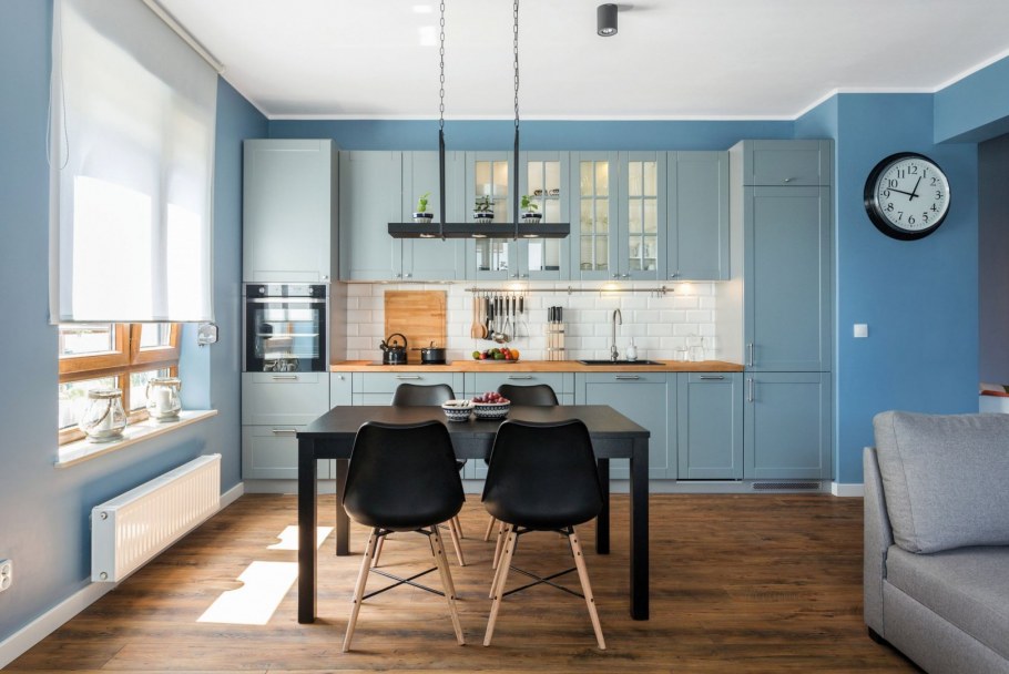Голубая кухня в интерьере сочетание
