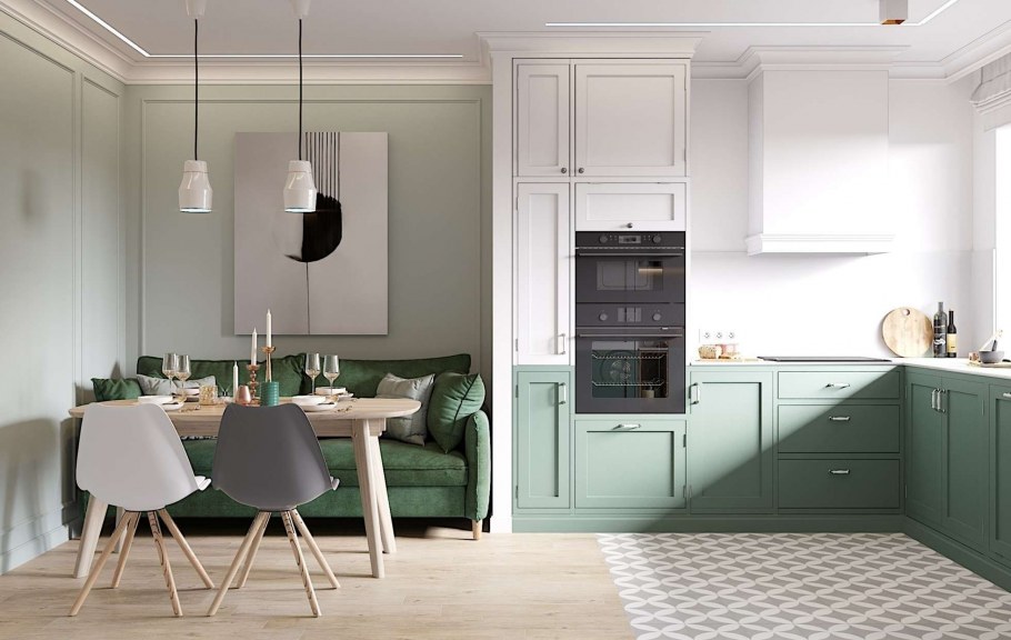 Мятные стены на кухне