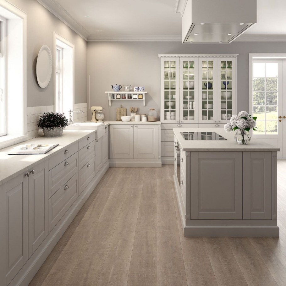 Светло-серый цвет стен на кухне