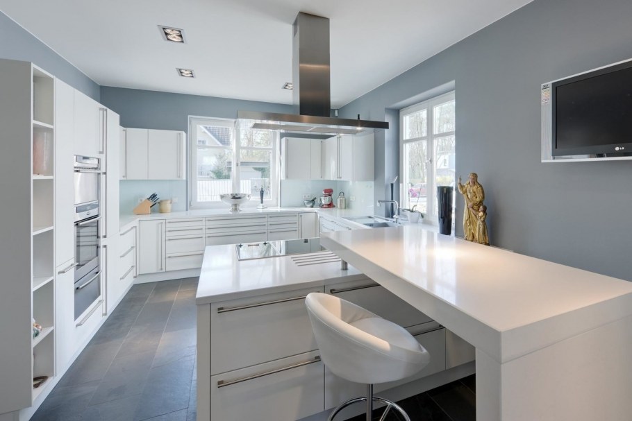 Белая кухня голубые стены