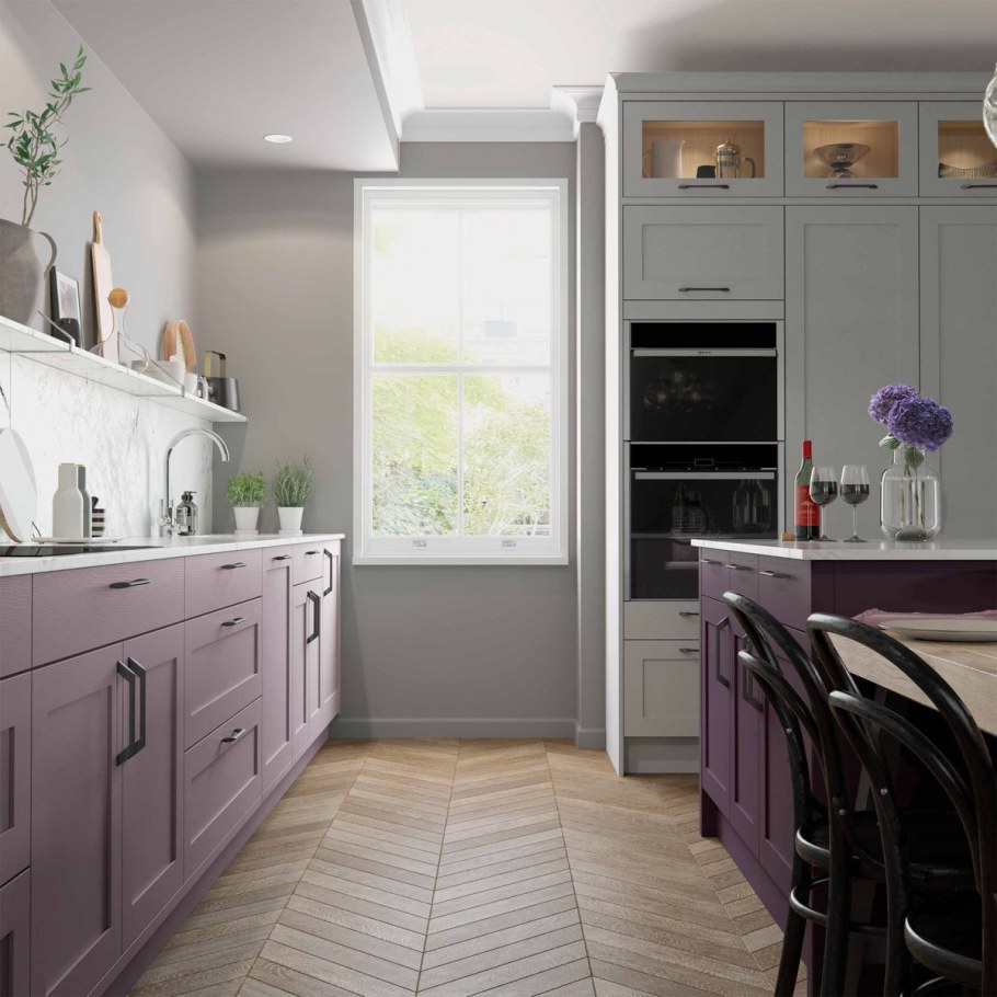 Серо розовая кухня