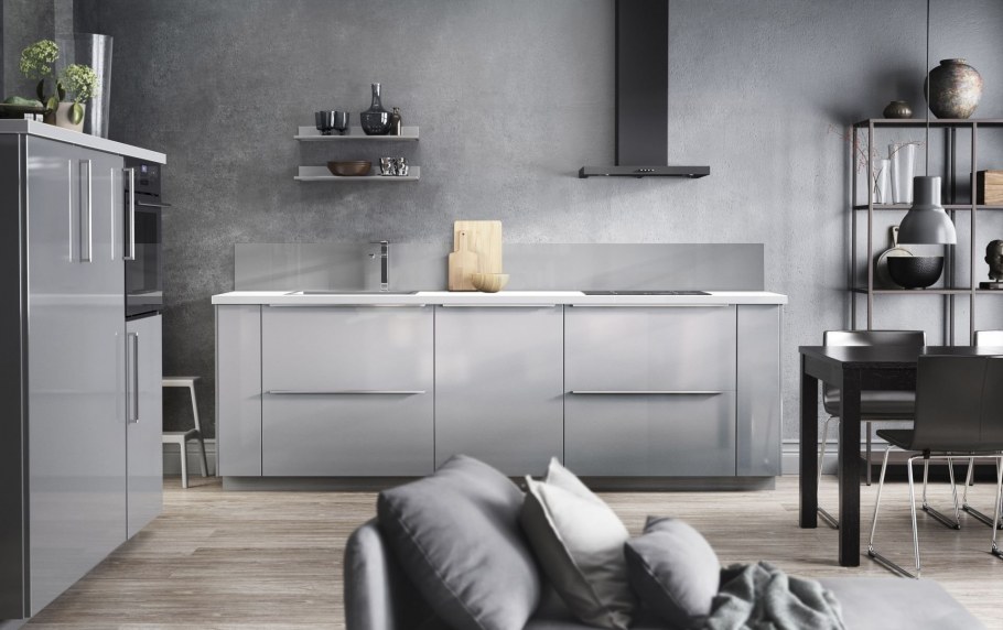 Серая матовая кухня икеа