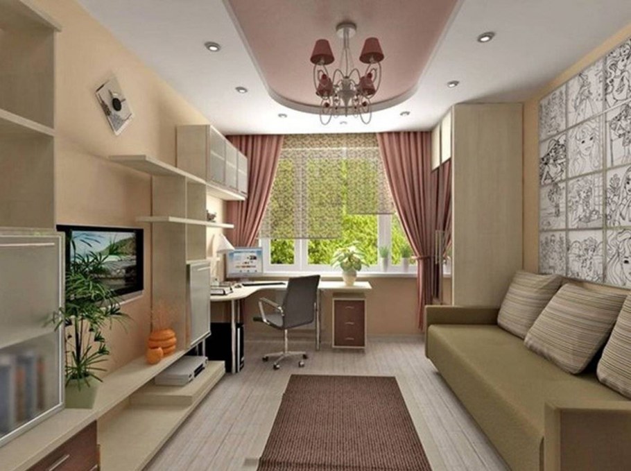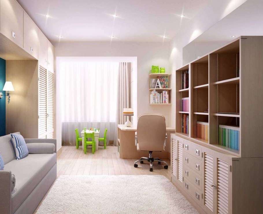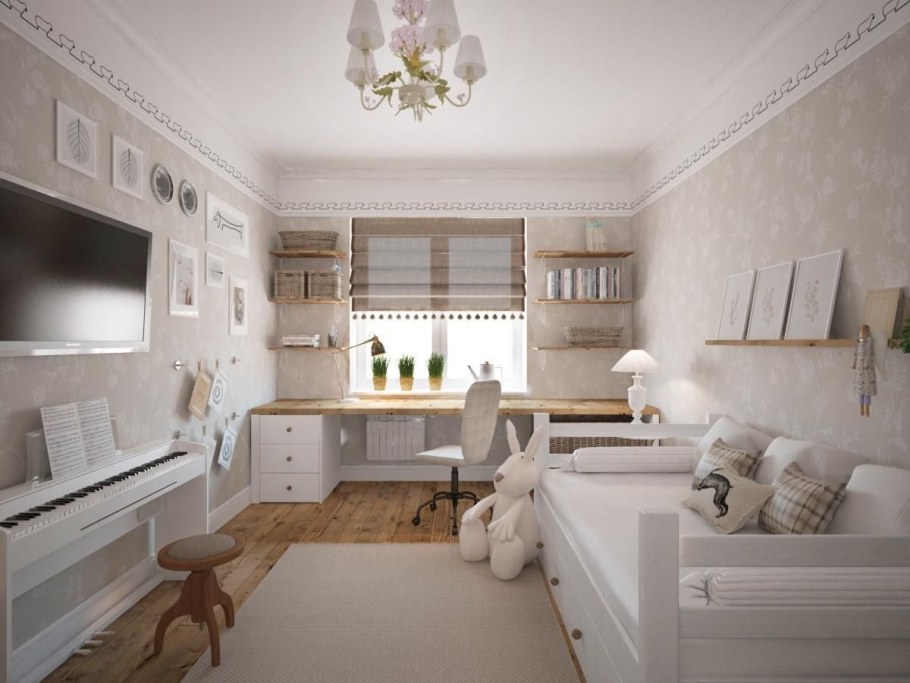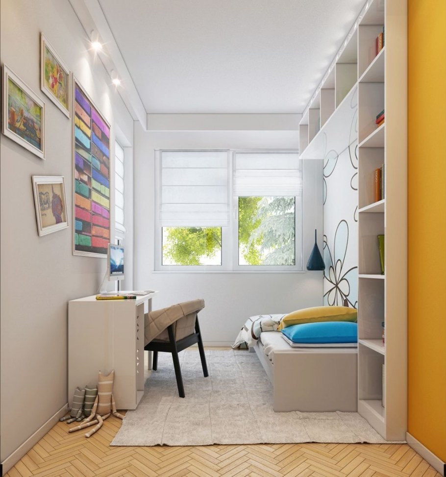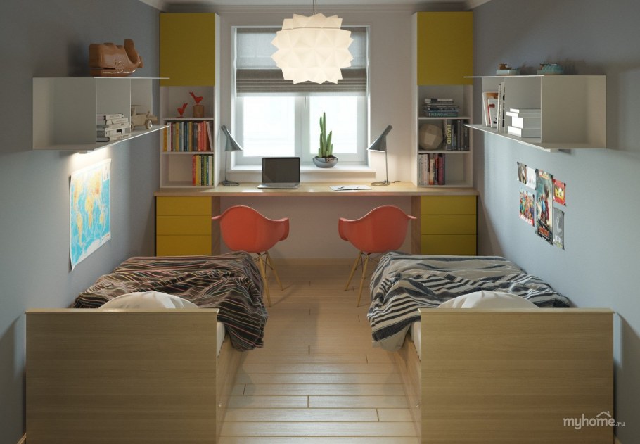 Расположение мебели в детской прямоугольной комнате (81 фото)