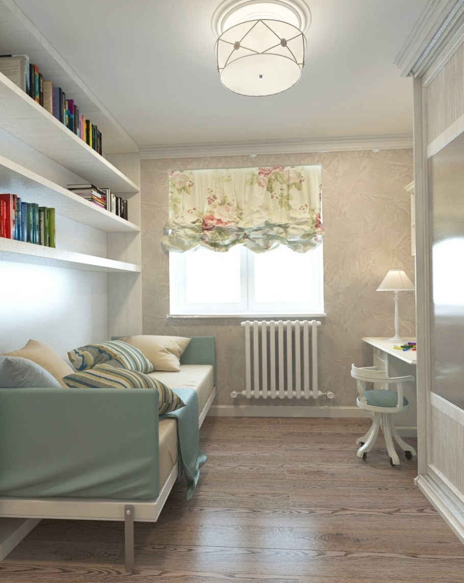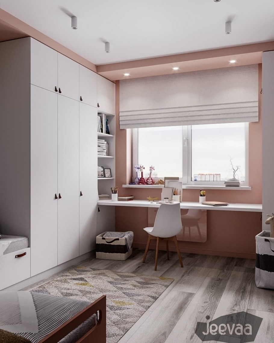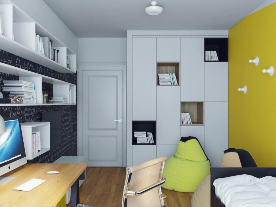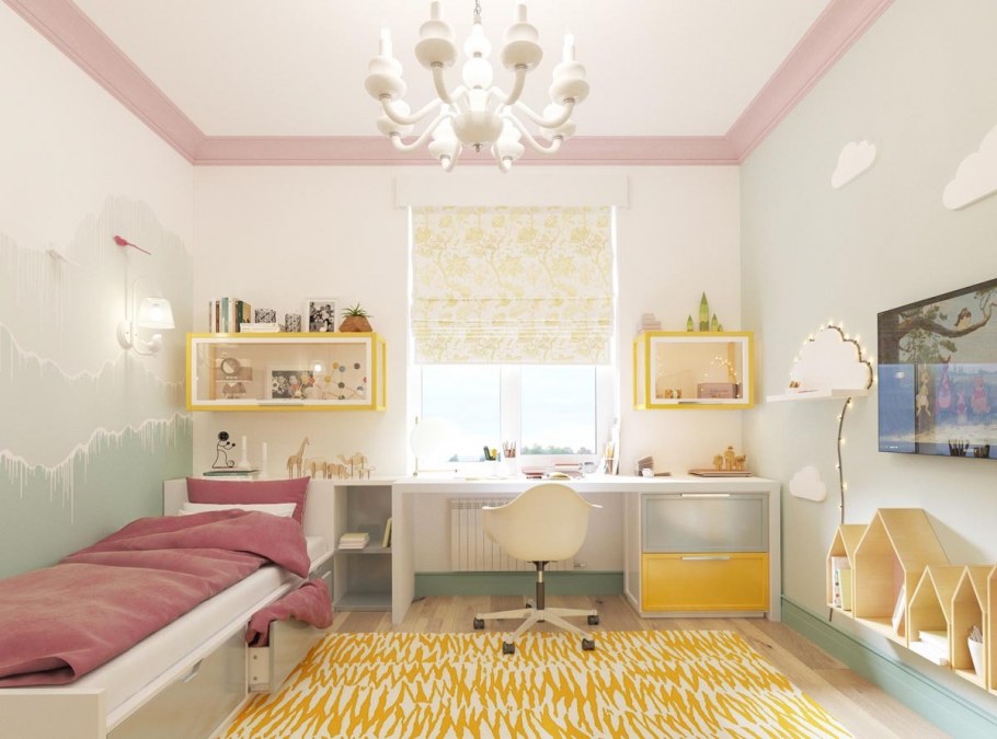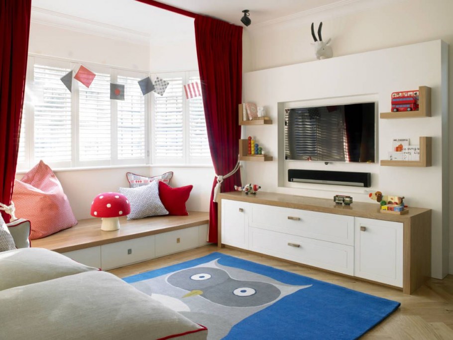 Расположение мебели в детской прямоугольной комнате (81 фото)