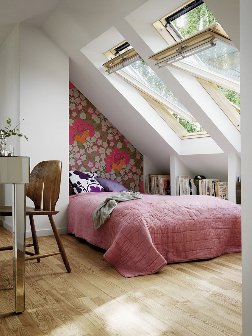 Спальня с мансардными окнами