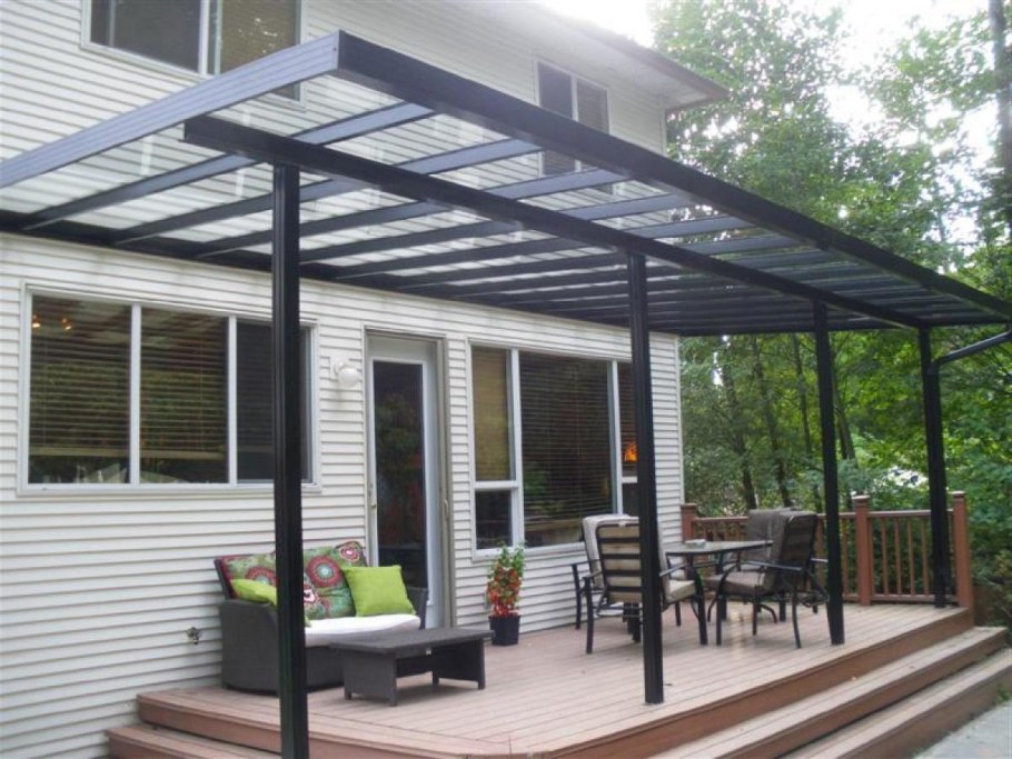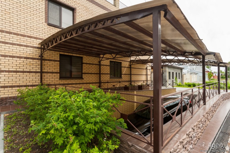 Навесы из железа над террасой примыкающей к дому