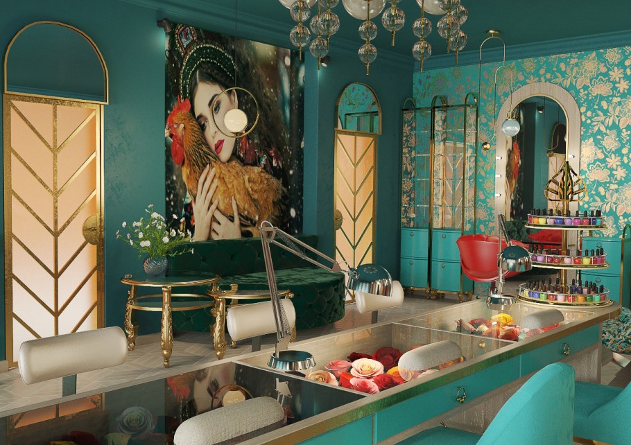 Бирюзовый цвет в интерьере салона красоты (78 фото)