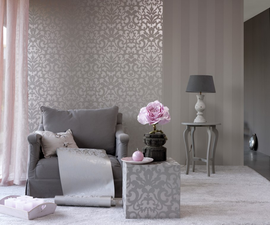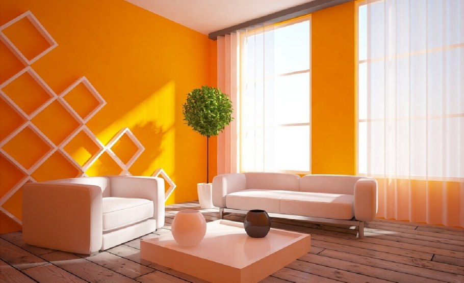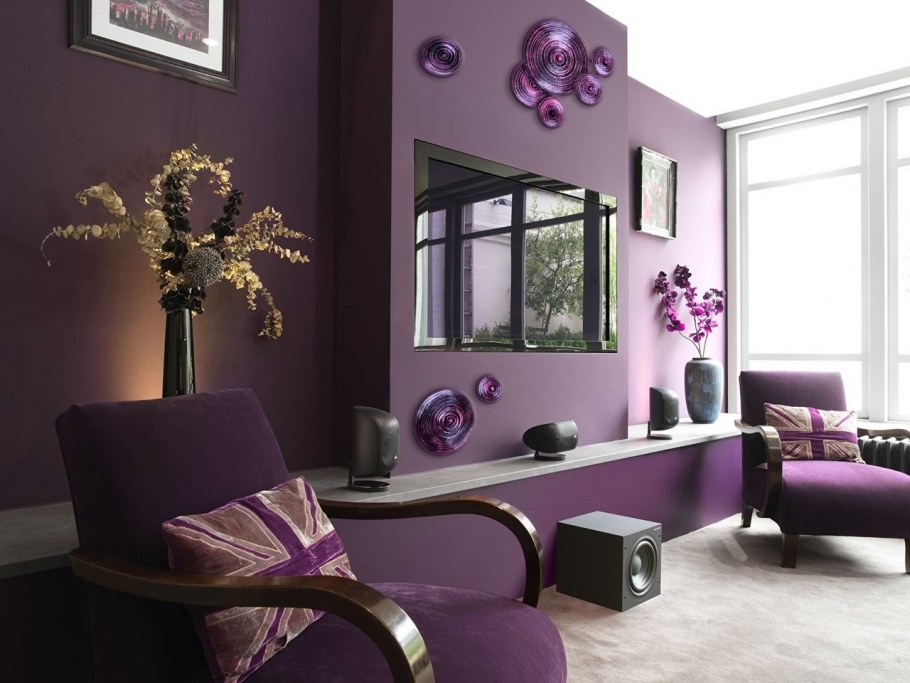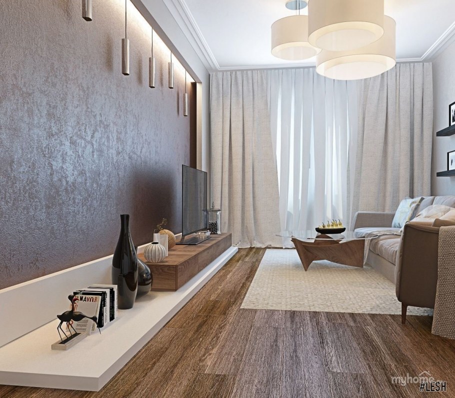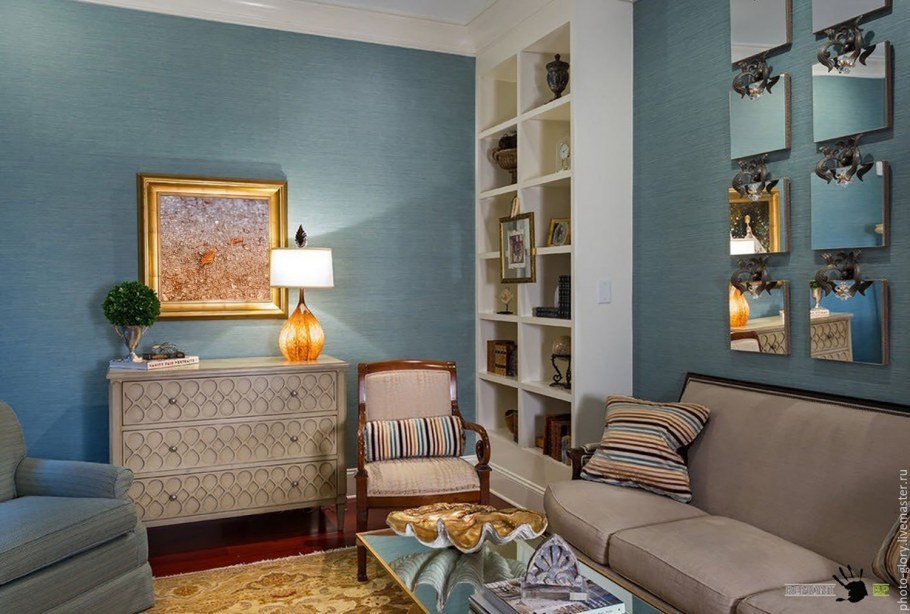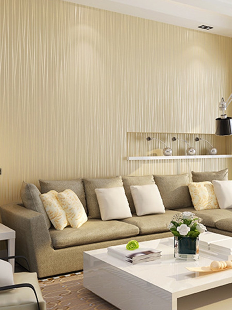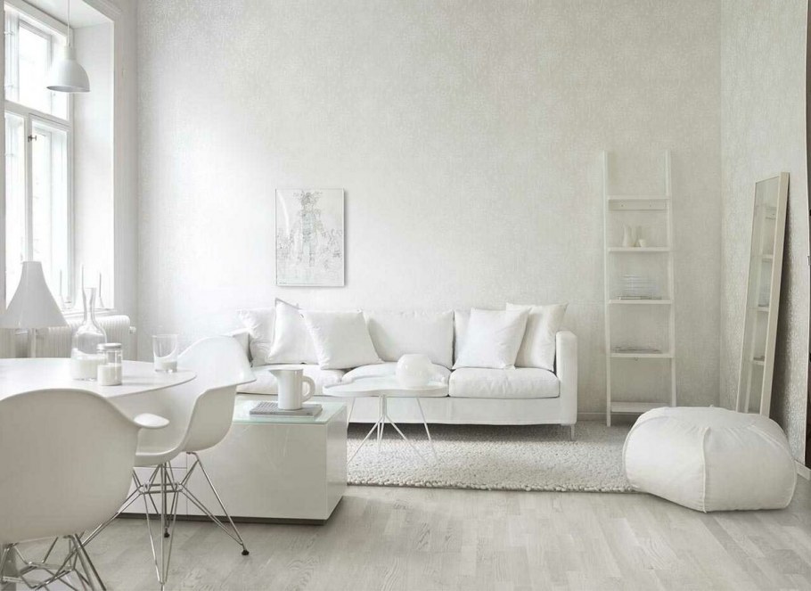 Однотонные обои для стен в интерьере гостиной (81 фото)