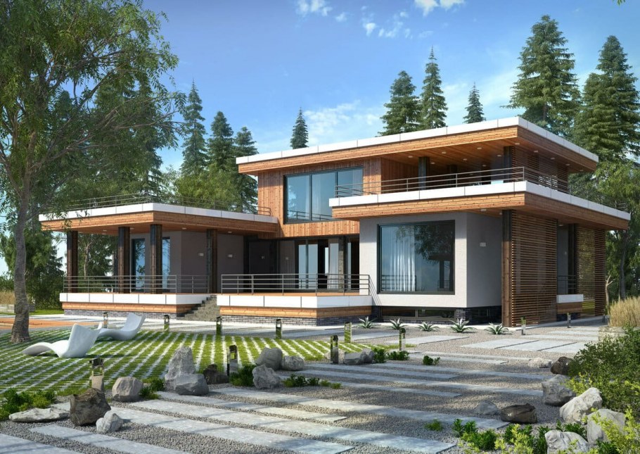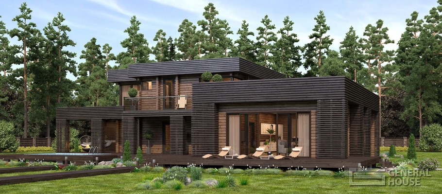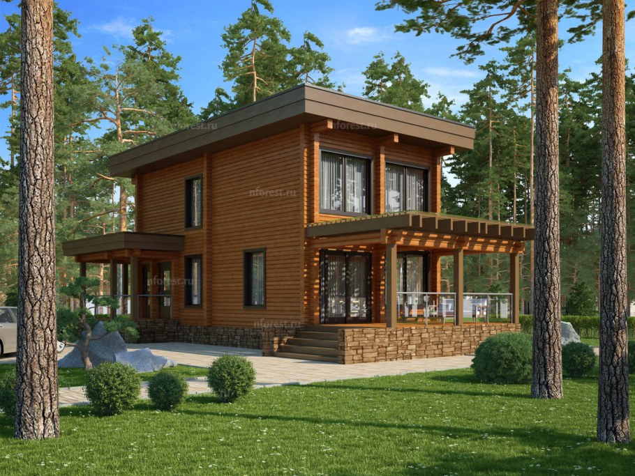 Дом из клееного бруса с плоской крышей (80 фото)