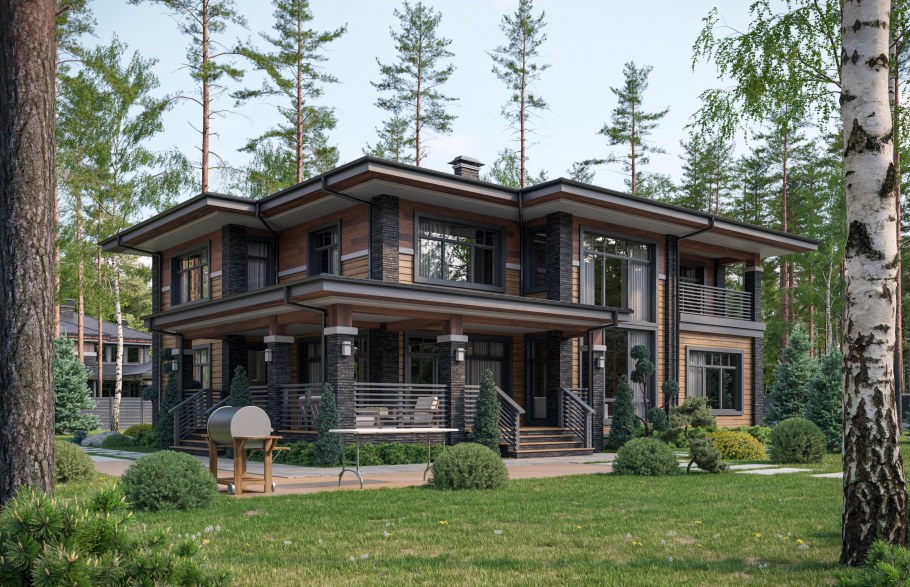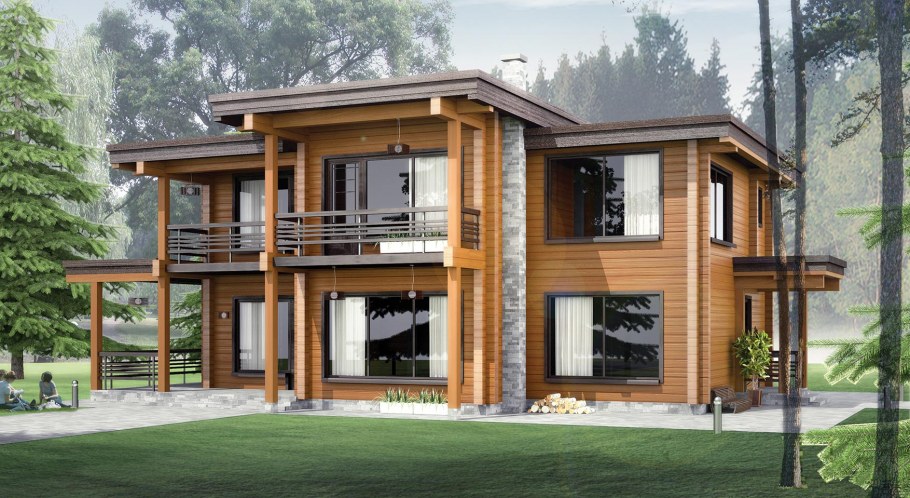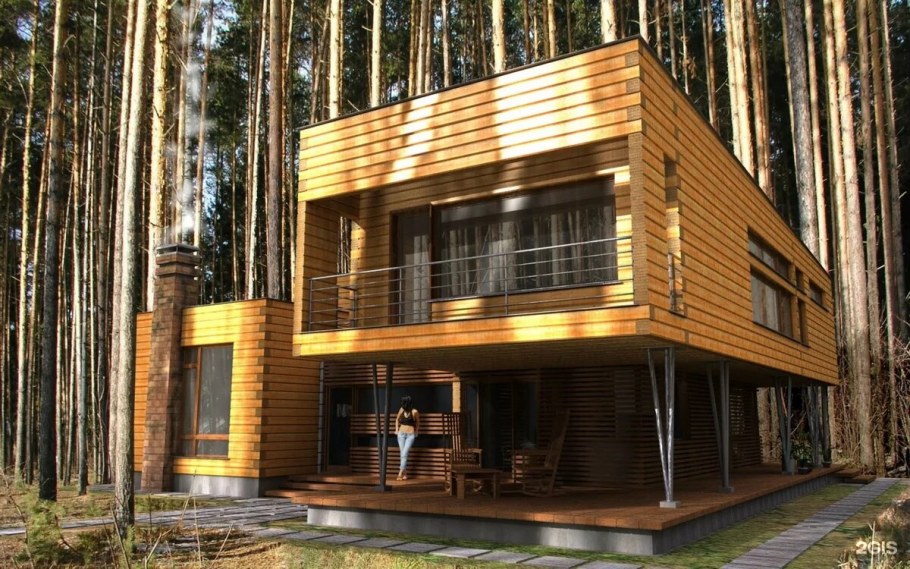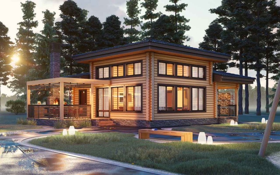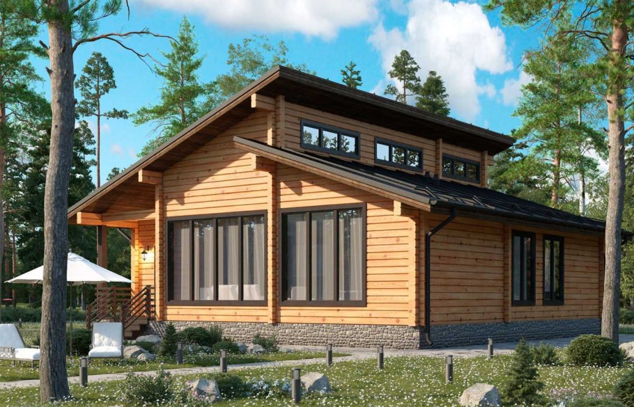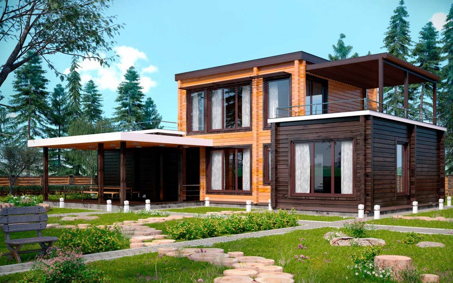 Проекты коттеджей из бруса в современном стиле
